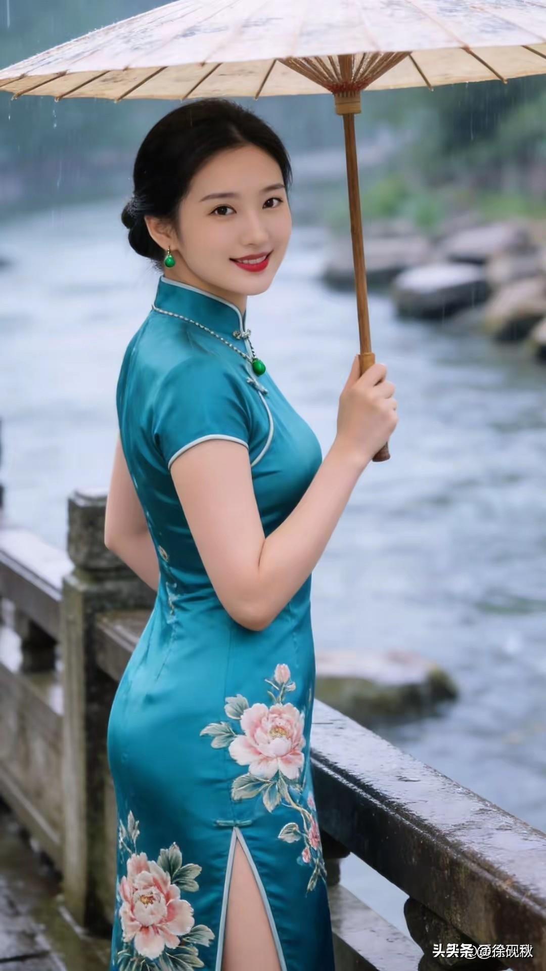 江南水乡,白墙黛瓦。 小桥流水,一把雨伞。 一把折扇,一叶小舟。 身着旗袍,流动风景。