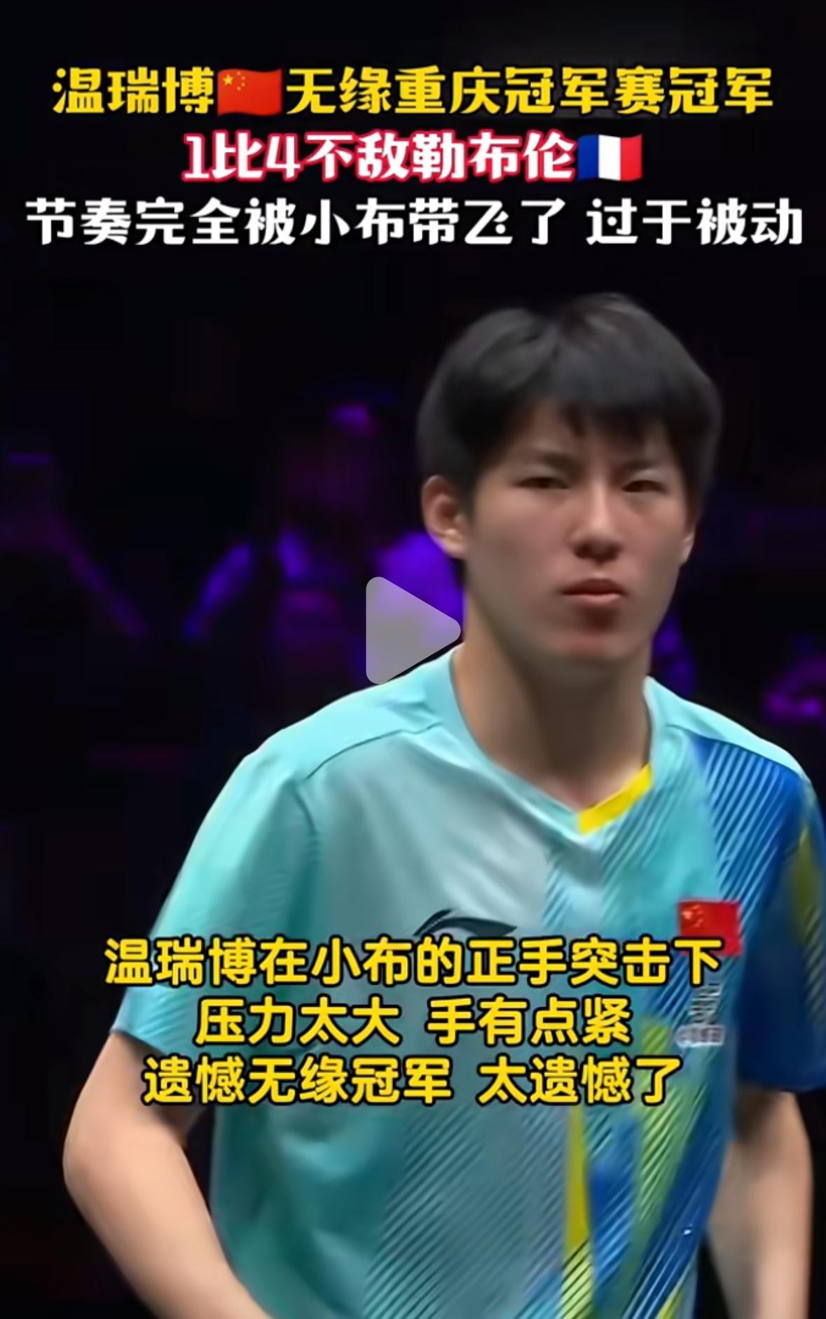 侯英超老师谈温瑞博夺得亚军,领奖台上一脸不开心: “恭喜温瑞博夺得重庆冠军赛亚军, 颁奖典礼上还在复盘比赛, 一脸不服气, 把不高兴写在脸上, 毕竟才19岁, 心里藏不住心思, 昨天打小勒布伦打的有些紧张, 如果像打莫雷加德,张本一样, 绝对不是这样的比分, 主场作战,给自己的压力太大, 影响发挥, 其实完全不用, 你在我们心里已经是冠军, 而且冠军也不是那么容易获得的, 小勒布伦参加大赛的机会比小温 多几倍,奥运会都参加了, 都是磨练出来的, 喜欢温瑞博打球有血性, 亚军已经很棒, 这个赛场你已经尽力了, 不是技术不行, 是全场被小勒布伦的节奏带着走! 小温是外卡, 连续打败科顿, 莫雷加德,邱党,张本智和, 这个亚军是含金量最高的亚军!” 可以理解, 这也是责任心的一种表现, 就像温瑞博在采访中说的, 国乒男队不管是老将还是小将, 都有为国争光的责任, 都要拼尽全力赢下比赛! 温瑞博有敢打敢拼的精神, 未来可期!