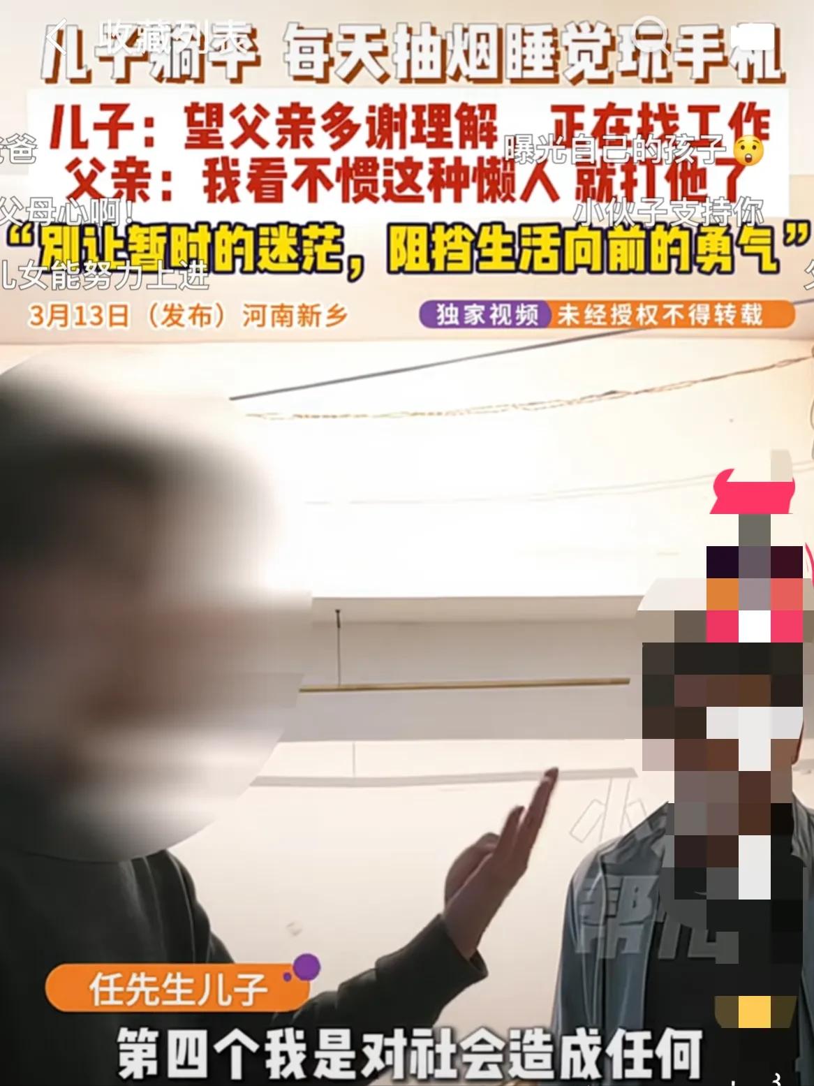 河南新乡,一男子大学毕业不去找工作,整日在家抽烟睡觉玩手机。父亲看不下去了,就说了儿子两句。谁知儿子不听,还认为父亲不理解他,父子俩也闹了矛盾。父亲没办法,找来记者协调。谁知刚一见面,男子甩出“三连问”,把记者也给整懵了。 这事儿发生在河南新乡,主人公是任先生和他25岁的儿子。任先生今年快50岁了,一辈子没什么文化,常年靠打零工、干体力活养家。 日子过得紧巴巴,家里条件很一般,平时自己省吃俭用,舍不得买一件新衣服,可对儿子,他却几乎是有求必应,从小到大,从来没让儿子受过一点委屈。 任先生自己尝够了没文化、没本事的苦,年轻的时候走南闯北,做过最累的活,受够了社会的人情冷暖,他比谁都清楚,普通人想翻身有多难。 在他心里,只有知识才能改变命运,所以不管儿子学习成绩怎么样,哪怕只是中等水平,他也咬紧牙关,拼尽全力供儿子读书,从小学到高中,再到考上大学,他从来没让儿子为学费和生活费操过心。 那些年,任先生起早贪黑,累得腰都直不起来,有时候忙到深夜才能回家,可只要想到儿子在大学里好好读书,将来能有一份体面的工作,不用像自己一样辛苦,他就觉得一切都值得。 就这么熬了十几年,好不容易等到儿子大学毕业,任先生心里的石头终于落了一半,他以为,儿子毕业之后就能找一份稳定的工作,成家立业,自己也能松口气。 可他万万没想到,儿子毕业之后,没有去找工作,反而直接收拾行李回了家。刚开始,任先生也没好意思多说什么。 他想着,儿子刚结束十几年的学业,肯定累了,就当是让他在家放松一段时间,适应适应社会节奏,缓一缓再找工作也不迟,这种想法,相信很多家长都能理解。 可这一放松,就没了尽头。儿子在家彻底躺平,每天睡得昏天暗地,太阳晒到屁股才慢悠悠起床,有时候甚至能睡到中午一两点。 起床之后,随便吃点东西,就窝在沙发上或者房间里,抱着手机刷个不停,一边刷手机,一边抽着烟,烟灰到处乱扔,家里被弄得乱七八糟。 任先生看在眼里,急在心里,眼瞅着儿子已经25岁,正是成家立业的年纪,身边和儿子差不多大的年轻人,要么已经工作赚钱,要么已经谈婚论嫁。 可自己的儿子,却整天待在家里无所事事,连门都不出,更别说找工作、交朋友了。他试着跟儿子沟通,劝儿子出去找份工作,哪怕先找个简单的过渡一下,也好过整天在家耗着。 可每次一提起找工作的事,儿子就不耐烦,不仅不听劝,还反过来抱怨任先生不理解他,说任先生根本不懂现在的就业压力,不知道找一份合适的工作有多难。父子俩每次沟通,最后都会吵得面红耳赤,矛盾越来越深,到后来,两个人甚至连话都很少说。 任先生既心疼又无奈,他打又打不过已经成年的儿子,说又说不赢,看着儿子一天天消沉下去,他实在没办法,只能想到找记者来帮忙协调。 3月14号,记者赶到任先生家,刚一见到任先生的儿子,还没来得及开口劝说,男子就率先开口,甩出了三个问题,直接把记者整懵了。 男子语气平静,却带着一股不容置疑的劲儿,问记者:“我在家躺平,第一没犯法吧?第二没违背公序良俗吧?第三我麻烦到别人了吗?” 这三连问,问得记者一时语塞,不知道该怎么回应。任先生在一旁看着,急得直抹眼泪,忍不住哭诉:“真是一点办法没有,丢人啊,他整天睡觉抽烟玩手机,在家躺了这么久,我实在受不了了,他总得养活自己啊。” 面对父亲的哭诉,男子也有自己的说法,他承认自己确实有点懒,但并不是彻底躺平,这些天也一直在筛选几个合适的工作,只是还没确定下来。 他说,每次自己跟父亲提正在找工作的事,父亲就特别着急,不停地催促,反而让他更有压力,他还坦言,人生最不要做的事情,就是试图改变父母的认知,也希望父亲不要把自己的想法强加在他身上。 其实任先生的想法很简单,他没什么太高的要求,不指望儿子能大富大贵,只希望儿子能有一份稳定的工作,能自己养活自己,将来能有个依靠,不用像自己一样一辈子辛苦。 据了解,此前父子俩因为这件事,矛盾已经激化到任先生对儿子动了手,儿子一气之下出去找了宾馆住,住了半年之后,因为没钱交租金,被民警通知了任先生,父子俩才再次见面。 最后,在记者的耐心协调下,男子表示,最近几天一直在看招聘网站,会尽快确定工作,慢慢走出家门,不再整天在家躺平。 任先生也表示,以后会试着理解儿子,不再一味催促,给儿子一点时间和空间,父子俩的矛盾,也暂时得到了缓解。 一个人可以没有文化,但是绝对不能懒惰。要对自己的父母负责任,要有一颗感恩的心,即使父母托举不了孩子,但也要懂得孝道两个字。