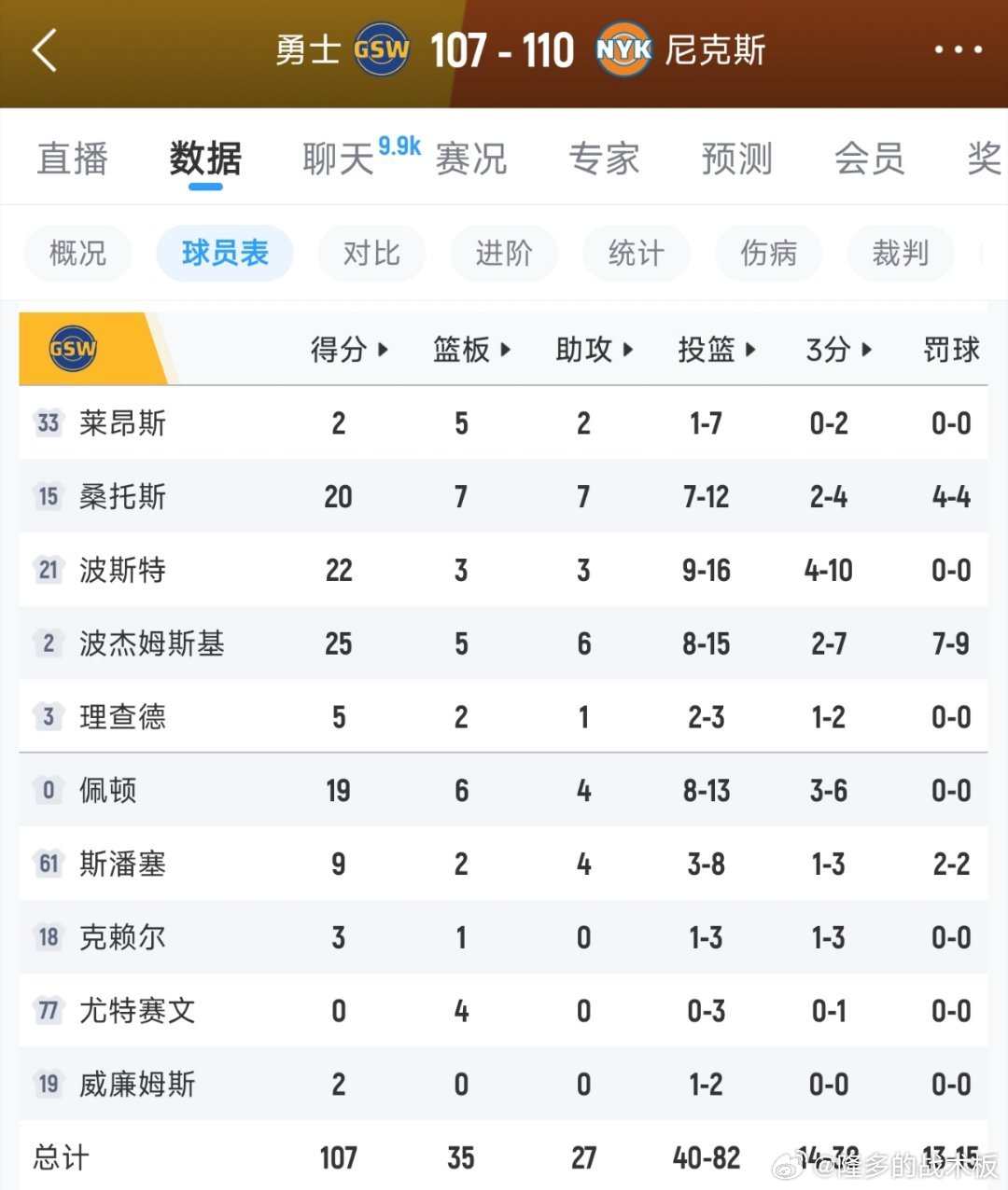 波斯特致命失误!勇士客场107-110不敌尼克斯,遭遇5连败。