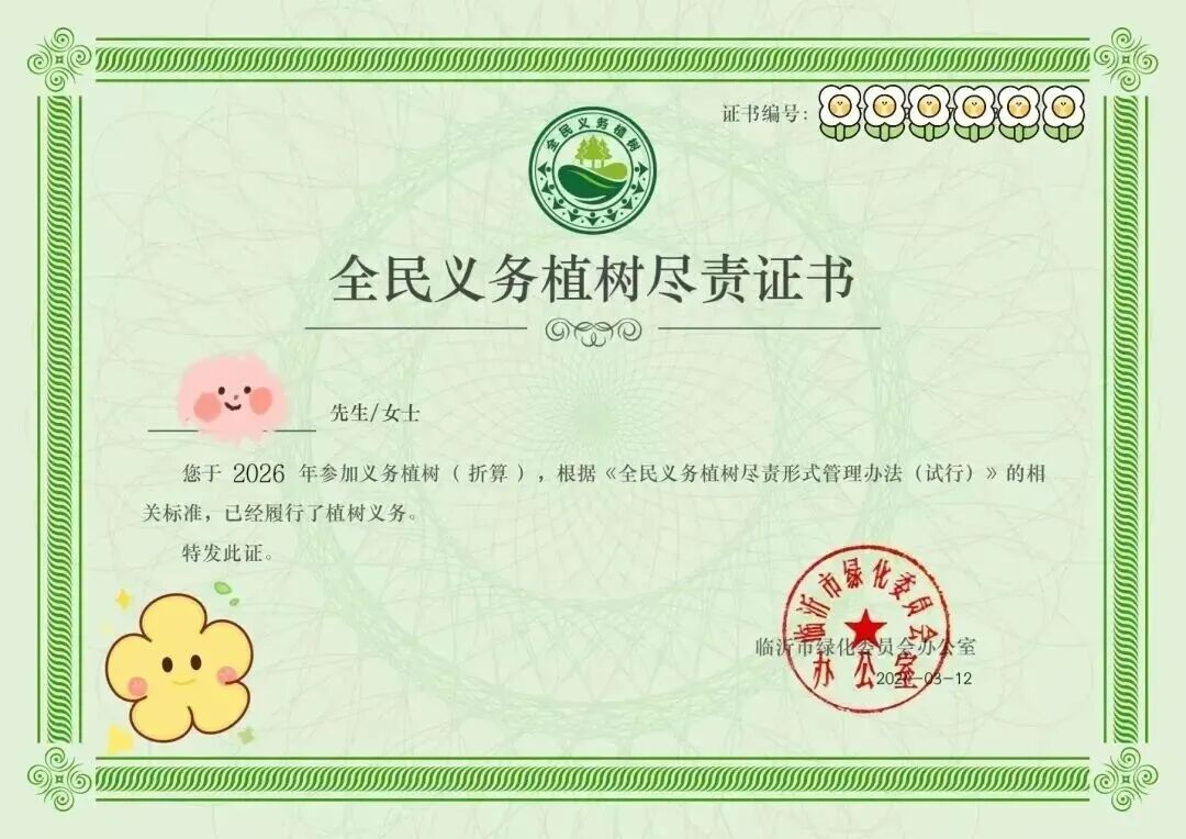 6.活动结束后,便可在“证书查询”中下载由临沂市绿化委员会颁发的《全民义务植树尽责证书》。
