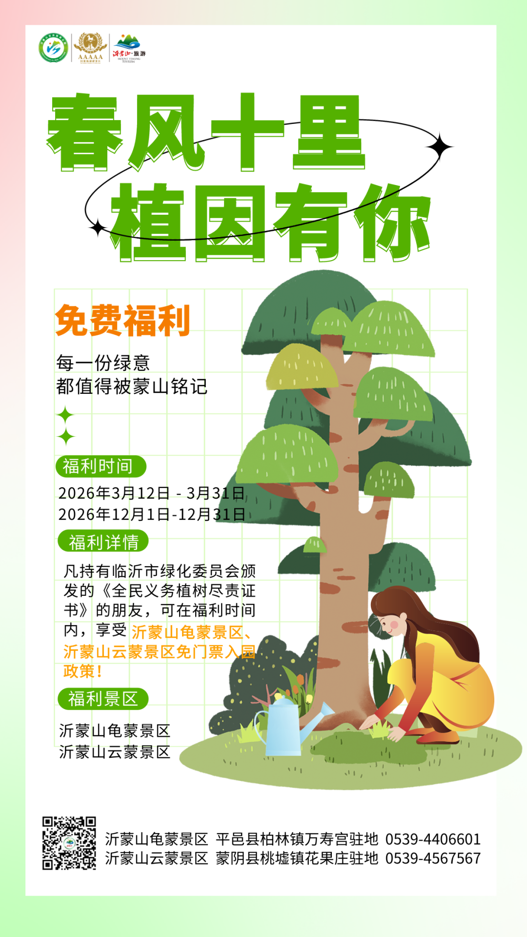 春风吐绿,草木初萌,今天是2026年3月12日,第48个中国植树节,在这个充满希望的日子里,沂蒙山龟蒙景区、沂蒙山云蒙景区送上一份诚意满满的春日大礼。