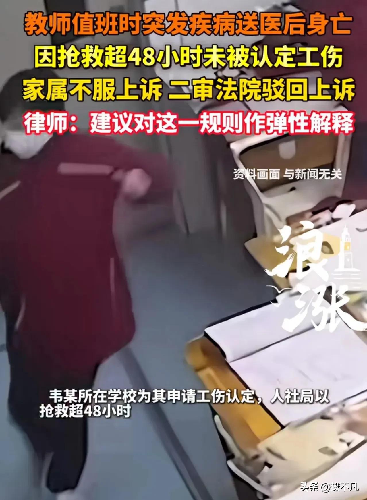 教师值班晕倒,抢救74小时去世,工伤认定被拒:超过48小时,不算! 广西贵港,一位小学老师,死在了工作岗位上。 他叫韦某,在学校值晚班时突然晕倒,脑出血,紧急送医。 74个小时的抢救,ICU里躺了三天三夜,最后还是没能救回来。 家属悲痛欲绝,拿着死亡证明去申请工伤认定。 结果被拒。 理由:抢救时间超过了48小时。 韦某当了一辈子小学老师,教书育人,认真负责。 2025年5月30日,他跟往常一样,留在学校值晚班。 凌晨,卫生间里突然一声闷响。 同事冲过去时,他已经倒在地上,脸色青紫,意识全无。 120赶到,一路狂奔送医。 诊断结果:严重脑出血。立刻开颅手术。 家属在手术室外守了一整夜,眼睛都不敢合。 医生出来,摇头:“手术保住了心跳,但脑干损伤太重。能不能醒过来,看天意。” 接下来的三天三夜,韦某躺在ICU里,浑身插满管子,呼吸靠机器,心跳靠药物。 家属咬牙坚持:只要有一线希望,绝不放弃。 74小时后,人还是没了。 韦某走后,家属向人社局提交工伤认定申请。 他们想,人是在学校出的事,死在岗位上,怎么也该算工伤吧? 结果等来一纸决定:不予认定工伤。 理由出自《工伤保险条例》第15条:在工作岗位突发疾病,48小时内抢救无效死亡的,视同工伤。 韦某抢救了74小时。 超了。 家属懵了:人是在学校倒下的,命是在抢救中没的,就因为多撑了26个小时,就不算工伤? 他们不服,把人社局告上法庭。 法庭上,家属抱着遗像哭到失声:他一辈子教书育人,从来没迟到早退过,这次是为了值班才累倒的,凭什么不算工伤? 法院审理后认为:医疗机构出具的临床死亡时间确实超过48小时,人社局的决定合法。 驳回。 上诉。 二审维持原判。 事情曝光后,评论区彻底炸了。 “意思是48小时内,家属就得做决定?继续抢救就不算工伤,放弃才能认定?这不是考验人性吗?” “别说超过48小时,就算超过480小时,也属于工伤!人是在岗位上病倒的!” “法律是死的,人是活的。这种规定不改,以后谁还敢拼命抢救?” “太寒心了,老师一辈子教书育人,最后死在岗位上,连个工伤都混不上。” 也有理性分析的声音: “法律条文就是这么写的,人社局和法院按章办事,没毛病。问题是这个‘48小时’的规定,是不是该改改了?” 48小时,到底合理吗? 《工伤保险条例》第15条的“48小时之限”,本意是区分“因工死亡”和“普通疾病死亡”。 但在实际操作中,这条硬杠杠制造了太多悲剧: 有人为了赶在48小时内,家属被迫签字放弃抢救; 有人明明还在抢救,却因为时间超了,被挡在工伤认定门外; 有人死在岗位上,却因为ICU多撑了一天,家属拿不到一分补偿。 韦某的案子,不是第一个,也不会是最后一个。 法律确实没错,按条条框框办事,人社局和法院都站得住脚。 但法律之外,还有人情。 一个老师,死在讲台边,死在值班岗位上,死在学生和家长的记忆里。 就因为ICU多撑了26个小时,他的家人就得独自扛下所有的医疗费、丧葬费、未来的生活开支。 这公平吗? 韦某的家属,最终什么都没要到。 官司输了,钱没拿到,人也没了。 他们抱着遗像走出法院的时候,记者问:你们还想说什么? 家属红着眼眶,只说了一句: “他这辈子,对得起学校,对得起学生。学校对得起他吗?” 没人能回答。 只希望有一天,这个48小时的硬杠杠能被重新审视。 因为法律保护的,不该只是程序正义,还有人心。 你觉得抢救74小时不算工伤,合理吗?评论区聊聊。