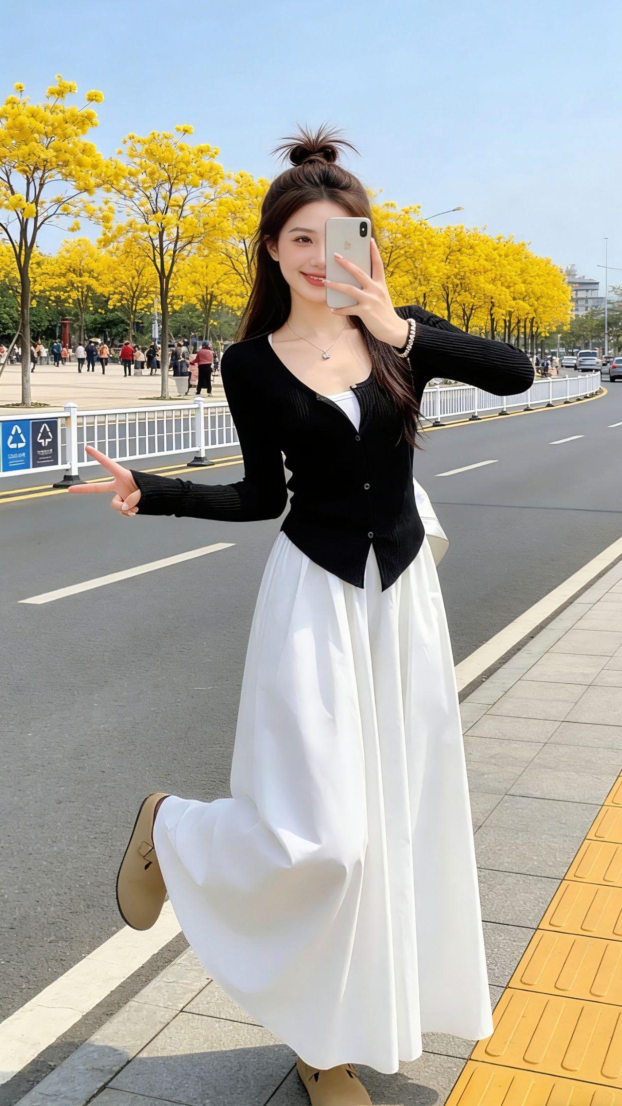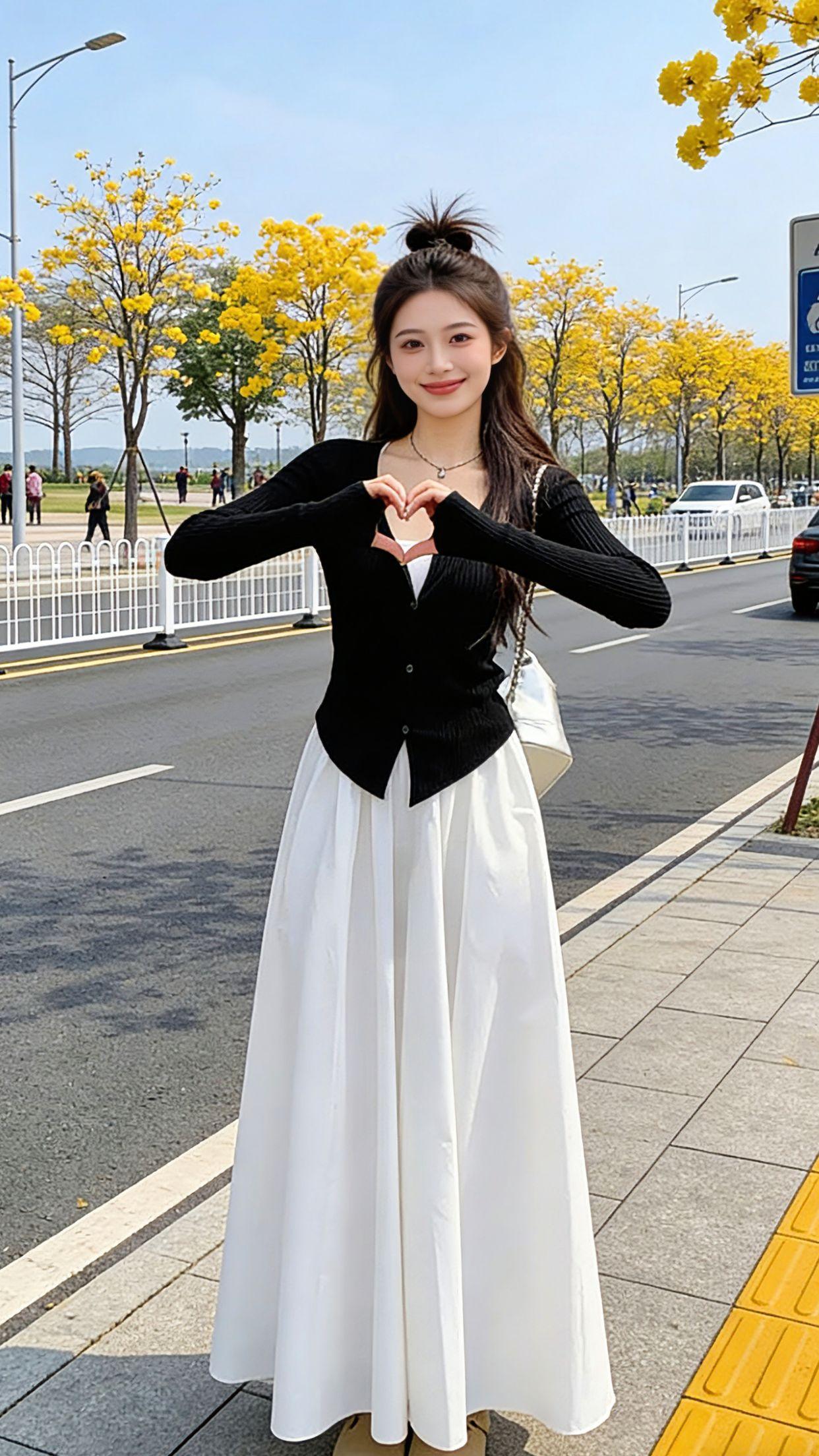 春天出门逛街就锁死这套!黑针织开衫修身不紧绷,刚好遮住腰腹肉肉,搭配垂感白长裙,胯宽腿粗都能很好修饰,对各种身材的包容度都很好。 日常通勤、周末出游都能穿,春秋单穿叠穿都合适,不挑场合不挑人,轻松穿出春日温柔松弛的氛围感。 春日氛围感穿搭 无法拒绝温柔感小裙子 分享我的早春美女感漂亮衣服 春天的美只有裙子才配 我的春日穿搭look @抖加🔥上热门🔥dou+🔥热点宝 @DOU+上热门 @DOU+小助手