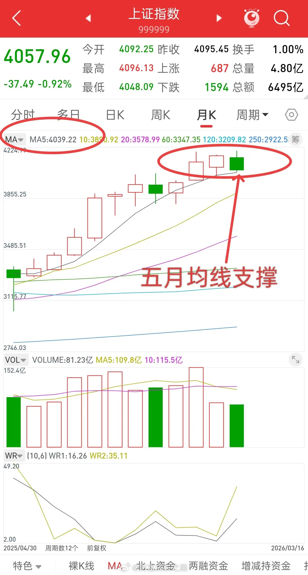 所以,对于做短线的话,就关注60日均线的得与失,收盘破了,及时离场,不破,耐心等待,那对于做中线来讲,下方关注二十周均线支撑的得与失,收盘破了,及时离场,不破,耐心等待。