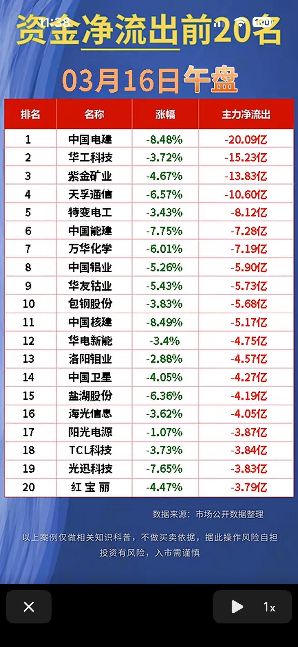 03月16日午盘资金净流入与净流出前20名,中油资本领跑! 3月16日午盘资金流向很有看头。中油资本在资金净流入前20名里领跑,这无疑是市场的焦点。资金的流向就像风向标,能反映出市场对不同股票的态度。 净流入意味着有大量资金看好中油资本,可能是其业务前景、行业地位等因素吸引了投资者。而资金净流出的20只股票,可能面临着一些压力,比如业绩不佳、行业竞争激烈等。 在股市里,资金流向是重要的参考指标。中油资本这次的表现,说不定会带动相关板块的走势,值得持续关注后续的发展。