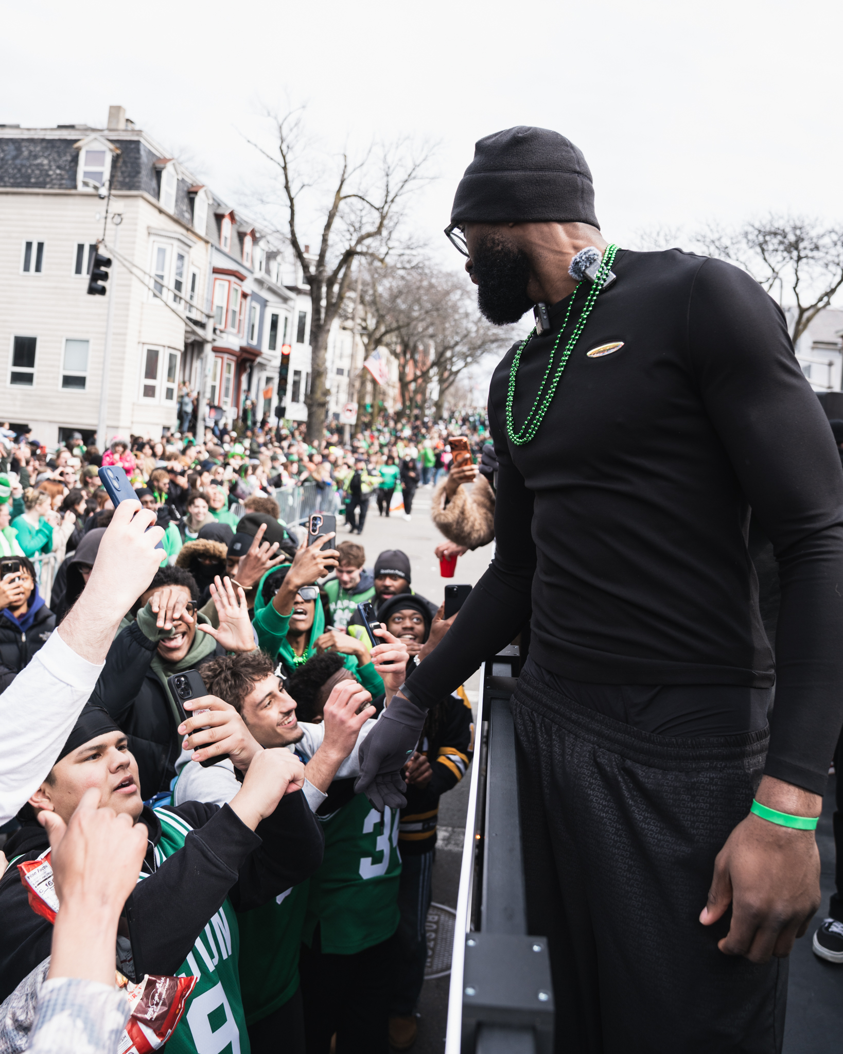 杰伦-布朗今天在南波士顿的圣帕特里克节游行中玩得非常开心 ☘️💚