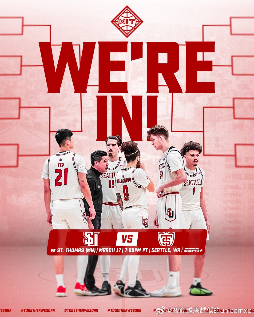西雅图大学赛季尚未结束,今年将参加NIT锦标赛,这是该校自1957年来首次参加NIT淡厚然NCAA