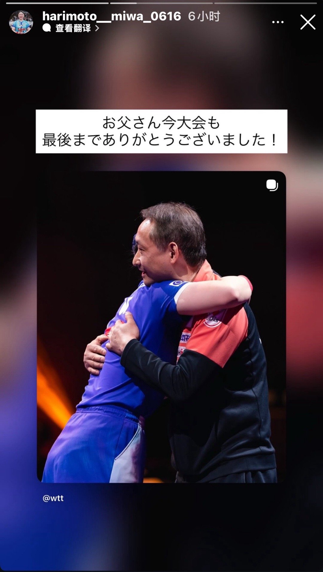 美和:我在 WTT重庆冠军赛 夺得了冠军。非常感谢一直为我加油的大家!爸爸,这次