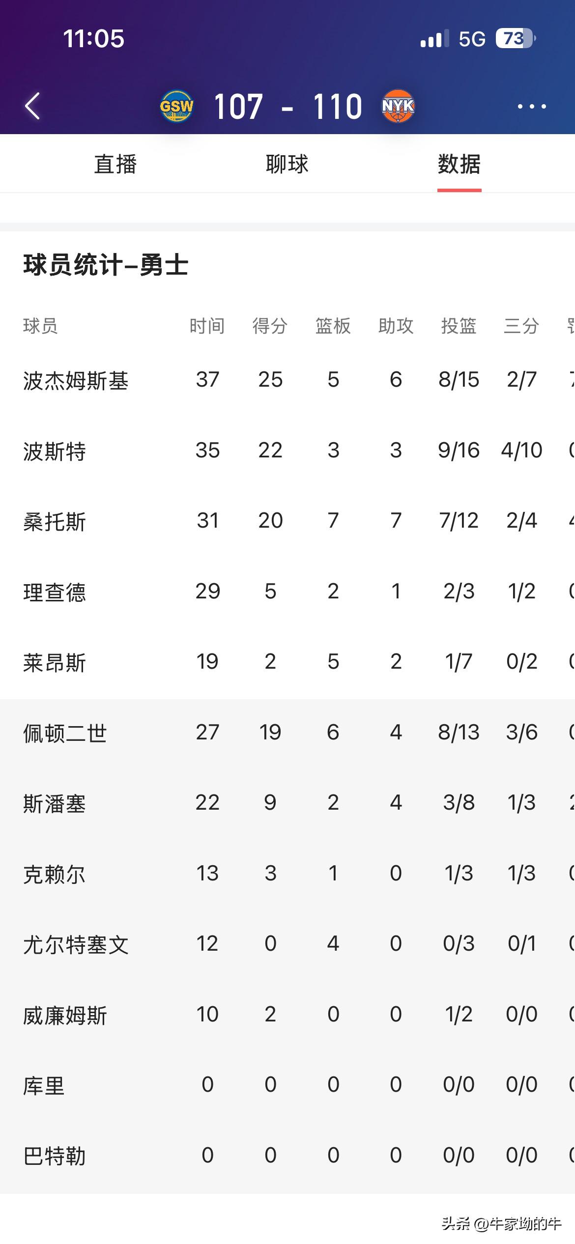 勇士和尼克斯这场比赛真是看得人揪心,当时比分105:108,时间只剩7.7秒,按常理确实该投3分追平,可波杰姆斯基却投了2分,这操作真让人摸不着头脑, 从数据来看,勇士上一轮残阵主场不敌森林狼,目前32胜34负,西部排名第九;尼克斯上一轮客场获胜步行者,43胜25负,东部排名第三。这场比赛前三节双方比分紧咬,到最后时刻这么关键,投2分很难不让人怀疑是不是在刷分,不过也有可能是当时场上情况复杂,他有自己的判断,但这结果就是勇士客场3分惜败,太可惜了。