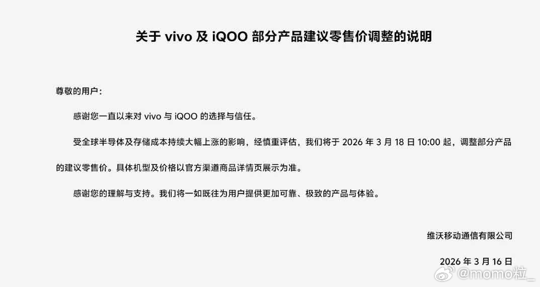 坦白讲,在这种大环境下,比起冷冰冰的价格,我更看重品牌的态度。像OPPO 和 vivo 能够选择提前发布公告,主动留出缓冲期,让用户有充足的时间去规划换机、去库存。与其悄悄涨价让消费者买单,不如这种把用户利益放在前面的做法,来得更有诚意继三星OPPO后vivo调价
