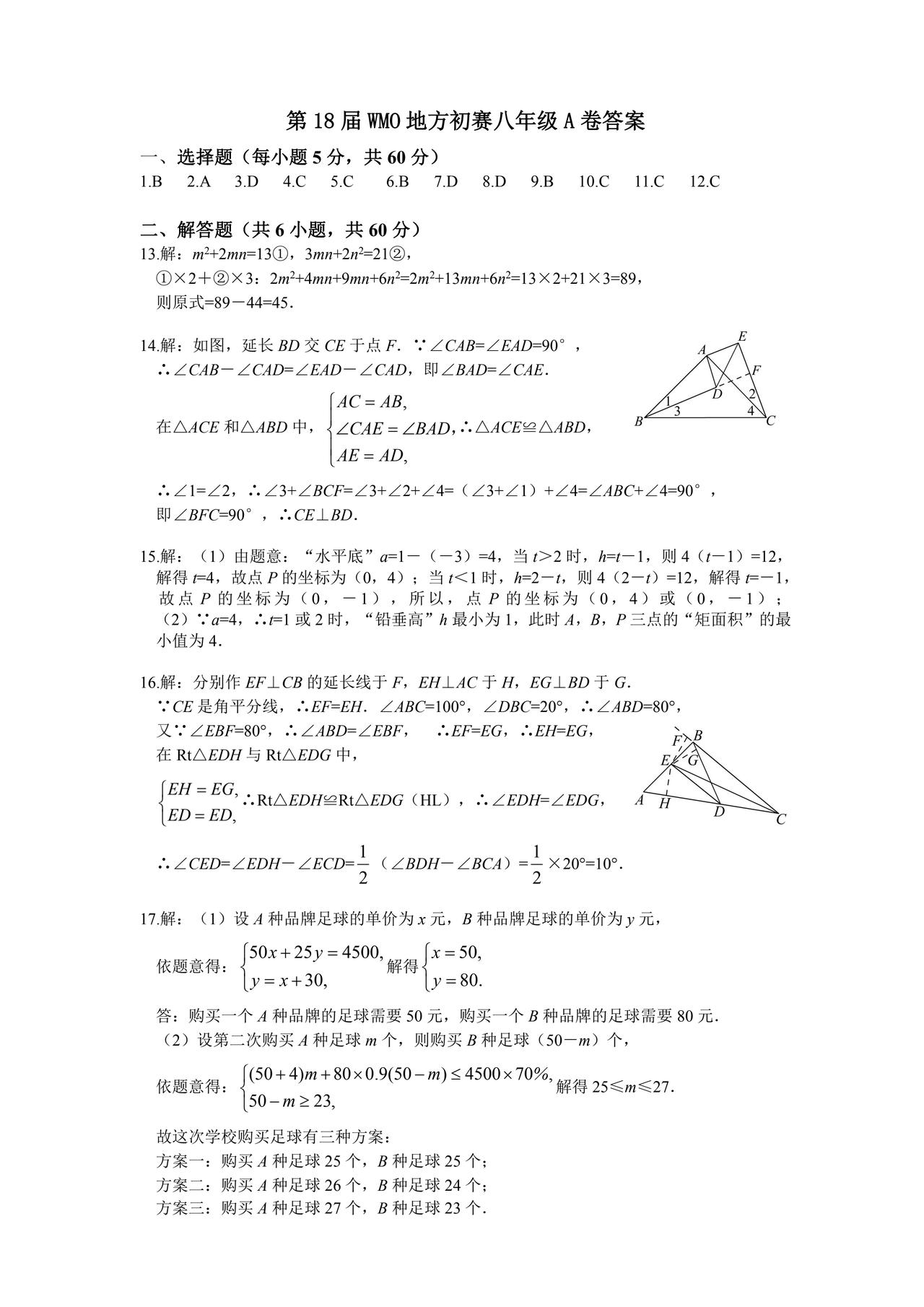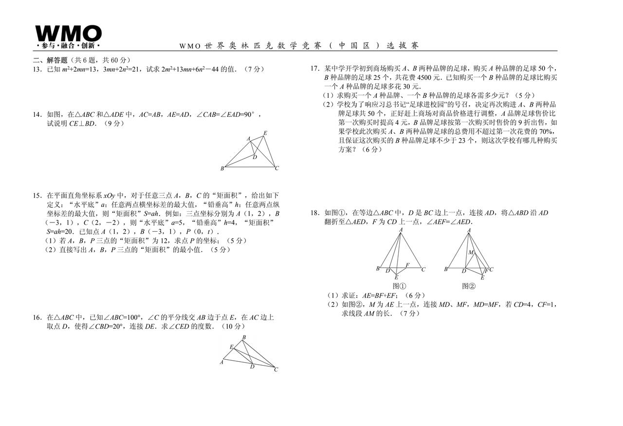 初中数学竞赛题一份 到了初二 几何地位突显 能把分拉开的往往是几何 而几何是讲感