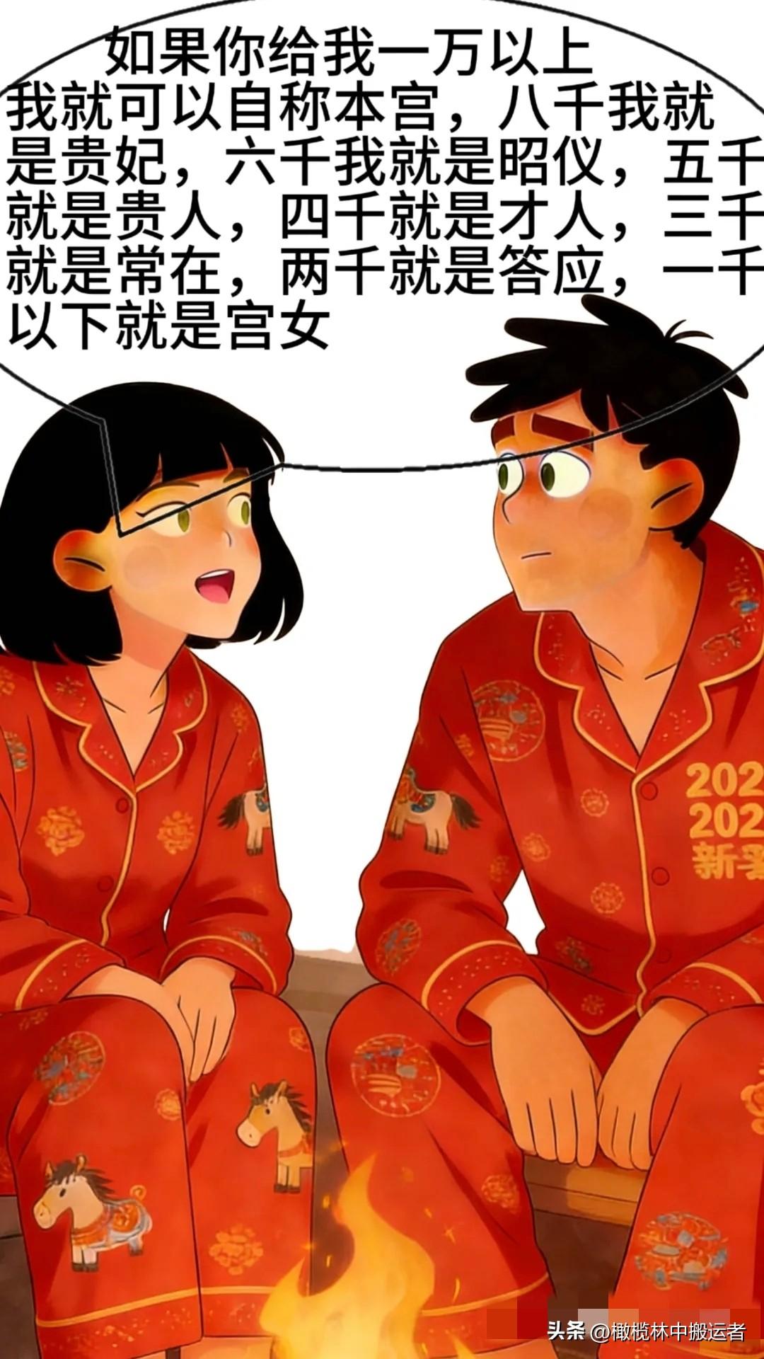 趣味漫画:老婆的压岁钱报价单:一万本宫,八千贵妃……我说了一句话,她愣住了