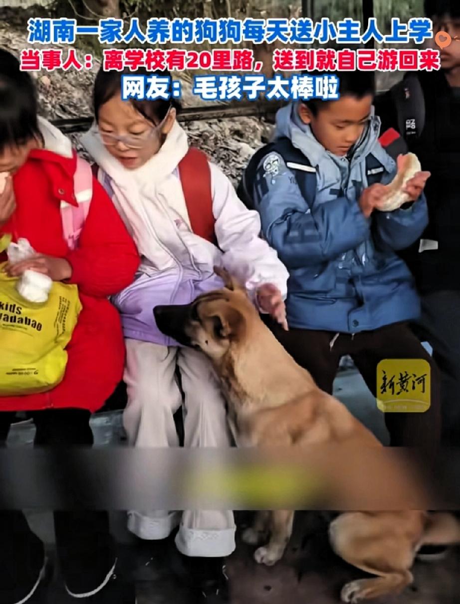 湖南这只中华田园犬也太暖了吧! 每天风雨无阻送小主人上学,20里路往返,没渡船就直接游过河回家~ 它叫大黄,从小学一年级就当起了“专属保镖”。 天刚亮就陪着小主人坐渡船、走山路,直到看着孩子进校门才放心离开。 回去没船的时候,它毫不犹豫跳进河里,凭着本能游回对岸的家,从没出过差错。 都说中华田园犬重情重义,这话真没假。 它不懂什么是责任,却把陪伴刻进了日常,还会帮爷爷下地浇菜、驱赶老鼠,懂事得让人心疼。 其实动物的爱最纯粹,不图回报,只认准一个人就掏心掏肺。 这只狗狗不仅守护了小主人的上学路,更给了孩子最珍贵的童年陪伴,这种双向的信任和依赖,比任何玩具都治愈。你家有没有这么通人性的毛孩子?