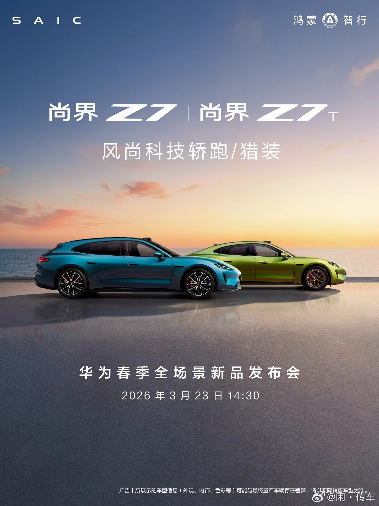 尚界Z7及Z7T将于3月23日亮相并开启预订近日,上汽与华为联合打造的鸿蒙智行第五“界”——尚界品牌官方宣布,旗下全新中大型轿车尚界Z7及猎装版车型Z7T,将于3月23日正式亮相并同步开启预订,两款新车的推出将进一步完善品牌高端产品矩阵,助力尚界深耕中高端新能源市场。据悉,尚界Z7定位中大型纯电轿跑,采用低趴溜背造型,风阻低至0.203Cd,搭配无框车门设计,颜值极具辨识度;尚界Z7T作为鸿蒙智行首款猎装车,兼顾优雅造型与实用空间,常规后备箱容积达620L,适配都市通勤与户外露营等多场景需求。两款新车均搭载华为全栈技术,全系标配乾昆ADS 4.0智驾系统与800V高压平台,CLTC续航超700km,可实现5分钟补能200km,兼顾智能化与性能表现。此次亮相预订,标志着尚界品牌从家用SUV向高端轿跑市场拓展,进一步夯实鸿蒙智行“技术+品质”的核心竞争力。