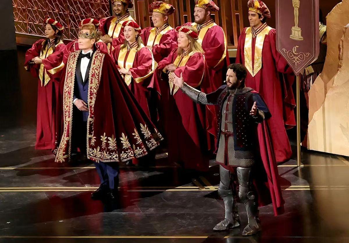 第98届奥斯卡笑点密集,但也有众多感人的悼念时刻 记者Maggie Ma洛杉矶报道 第98届奥斯卡3月15日颁发,喜剧名嘴、主持人柯南·奥布莱恩 (Conan O'Brien)扮演成去年热门恐怖片《武器》(Weapon)中的女巫,穿越到本次入围电影中,开启创意十足的奥斯卡开场。紧跟潮流,柯南也笑称自己可能是最后一个人类奥斯卡主持人,下届换AI了。 这是柯南·奥布莱恩第二次主持奥斯卡,他将自己变身《武器》中的恶婆婆女巫,出现在《F1》、《一站再战》(One Battle After Another)、《K-POP:猎魔女团》(Kpop Demon Hunters)等很多奥斯卡热门电影中搞笑,彰显了他的喜剧才华。他调侃说去年这个时候他主持奥斯卡洛杉矶不幸遭遇山火,但今年风调雨顺、一切平安,但其实暗讽美国正陷入战争泥潭。他并说:“典礼可能还是有政治相关内容,如果不喜欢听的可以去街对面Kid Rock主持的另一个奥斯卡典礼。” 柯南也没有放过最近因贬低芭蕾和歌剧备受争议的提莫西·查拉梅(Timothée Chalamet),他说:“今天奥斯卡安保森严,因为接到消息说,有芭蕾、歌剧演员们要来袭击奥斯卡。” 他并亲自穿上戏服在舞台上表演了一场搞笑歌剧。 典礼另一大亮点是久违的漫威演员重聚。出演钢铁侠的小罗伯特·唐尼(Robert Downey Jr.)和出演美国队长的克里斯·埃文斯(Chris Evans)一起颁奖。克里斯·埃文斯说因为这是他们俩一起出演《复仇者联盟》14周年纪念,并为唐尼准备了纪念日礼物。但唐尼显然忘记,只能临时从兜里掏出停车车票和一个闪闪的内裤作为礼物搪塞。两人将在再次出现在今年12月圣诞将上映的《复仇者联盟5》中,只不过这次小罗伯特·唐尼将出演反派人物“毁灭博士”(Dr Doom)。 安妮·海瑟薇(Anne Hathaway)携手时尚女魔头、Vogue杂志前主编Anna Wintour亮相奥斯卡担任颁奖嘉宾也给了观众一大惊喜,因为《穿布拉达的恶魔》续集将在今年暑期推出。另一部暑期大片《曼达洛人与古古》(The Mandalorian & Grogu)也在本次奥斯卡上安插了“推广”,片中的尤达宝宝现身奥斯卡台下嘉宾席。因为目前奥斯卡由ABC直播,所以迪士尼旗下的电影往往优先可以获得推广,但奥斯卡从2029年开始就失去ABC转播权,将改为在Youtube上直播。主持人柯南·奥布莱恩也在典礼中调侃道:“到时会是怎么个情况我们也不知道,广告可能随时插入。” 好莱坞知名导演罗伯·莱纳(Rob Reiner)在今年不幸被自己的亲生儿子谋杀。曾与他合作过的诸多好莱坞演员比利·克里斯托(Billy Crystal)、梅格·瑞恩(Meg Ryan)等出现在奥斯卡颁奖舞台上向他悼念, 也成为当晚一大感人时刻。歌手芭芭拉·史翠珊(Barbra Streisand)也登台悼念去年逝世、与她一起出演过《往日情怀》(The Way We Were)的好莱坞著名影星罗伯特·雷德福(Robert Redford) ,并在台上演唱了《往日情怀》主题曲。