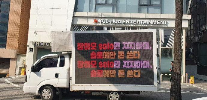章昊粉丝在乐华卡车喊话,支持章昊solo拒绝组团,否则全面停氪!👊有实力的孩子