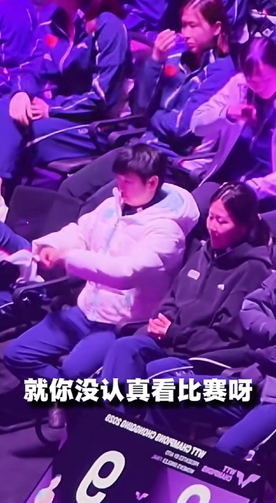 时刻在线的莎莎,看到乒乓球是一点不能停。 女单重庆冠军赛莎莎现场看蒯曼和张本美和