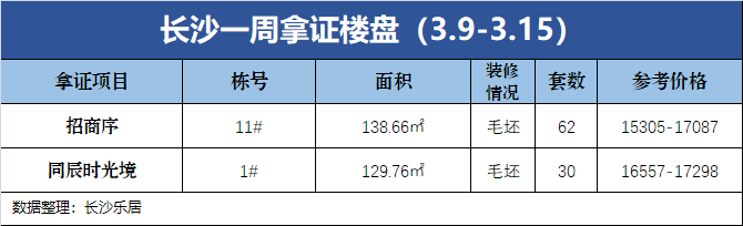 新房供应方面,根据长沙市住建局官网信息及克而瑞湖南统计显示,上周(3.9-3.15)内五区有2个项目新增供应,共计新增92套、1.24万方,分别是:招商序、同辰时光境,详细如下: