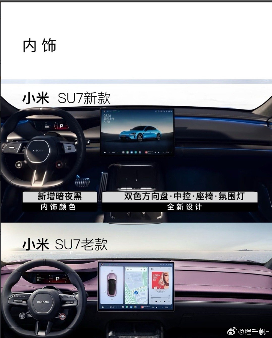 新SU7都不用坐进去,光看小米发的内视图就能明显感觉到跟老款SU7完全不一样,豪华感可以说是扑面而来