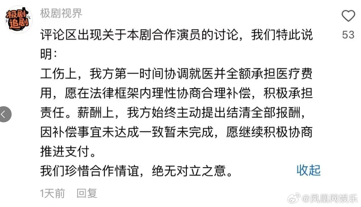 未备案漫剧将被强制下线多位短剧演员发声讨薪 过去一周,演员被欠薪、AI短剧中涉嫌侵权真人演员肖像版权等负面案例频发,行业乱象丛生。而这一现象或将被遏制,AI短剧行业可能迎来新的发展变化。网传4月后,未备案的漫剧将会被强制下线,引发热议......凤凰网娱乐梳理本周短剧行业核心动态,总览如下:一、短剧欠薪风波再起!多位演员发声维权近日,女频短剧女主丁晓现身剧集留言区讨薪,表示“工资结了吗你就上?工伤赔了吗你就上?”随后,其他演员也前来助阵讨薪。在剧集出品方回应后,丁晓也表示”片酬已结,后续赔偿在沟通当中。“