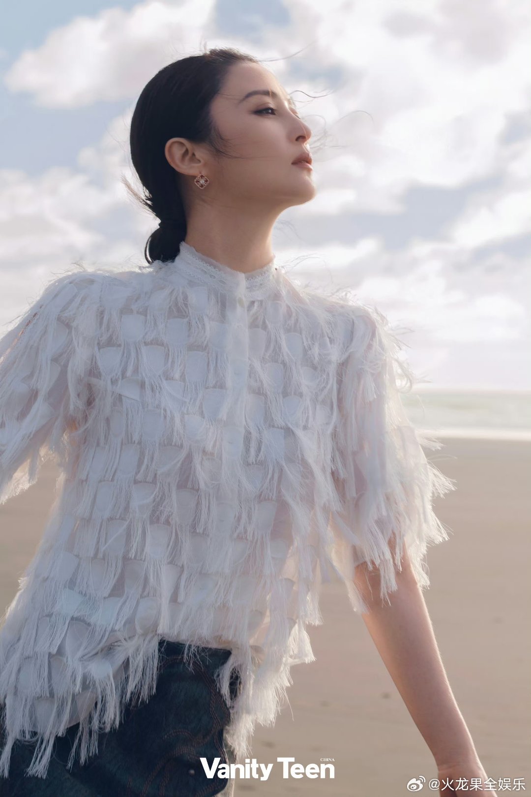蒋勤勤海上神女造型 海风吹动裙摆,蒋勤勤化身新西兰礁石上的神女!条纹轻纱飘逸如仙,转头又是湿发牛仔裤飒爽利落。一张脸360度能打,百变风格驾驭自如。好山好水好风景,更珍贵的是好神的一位姐姐!✨