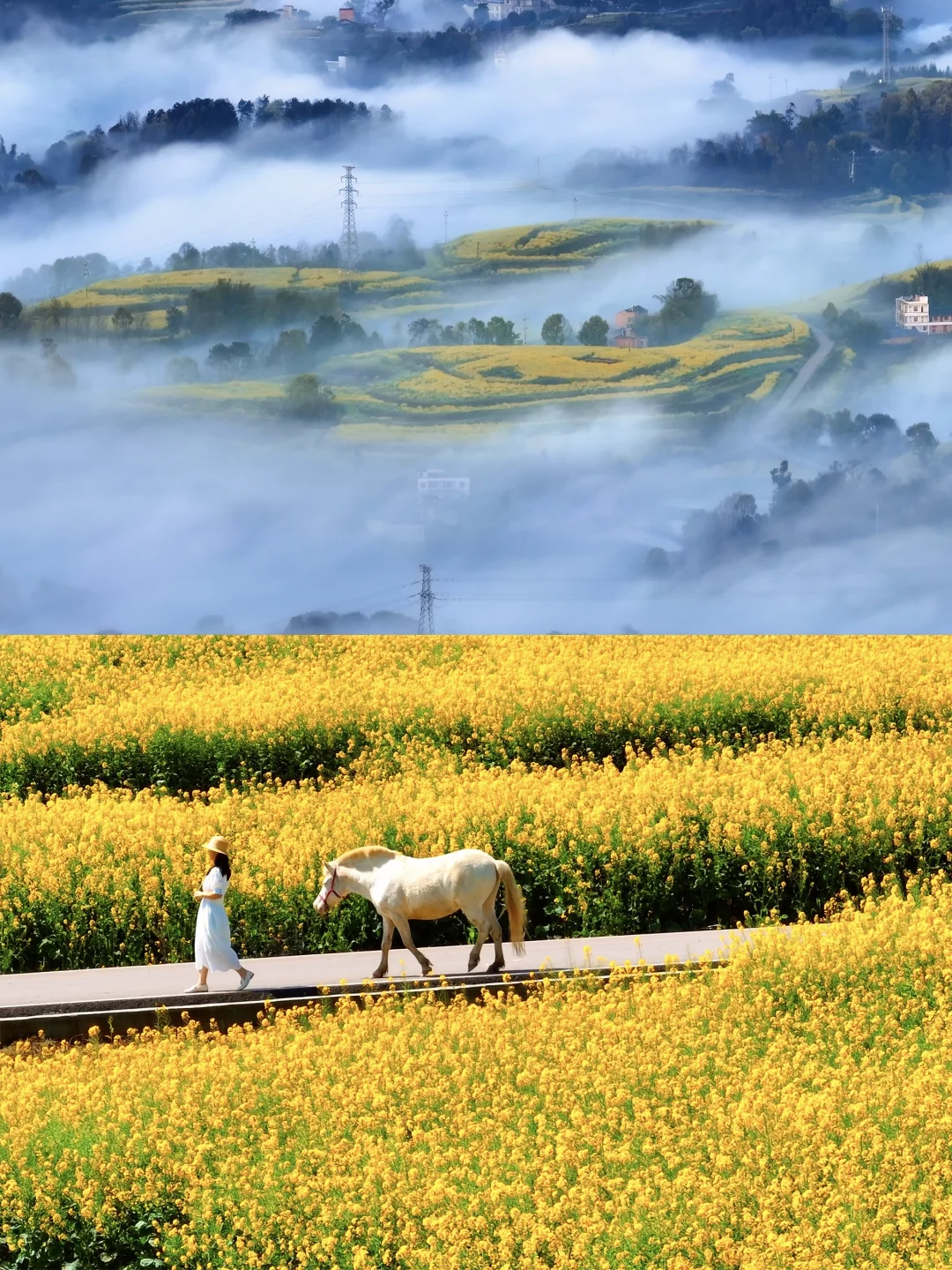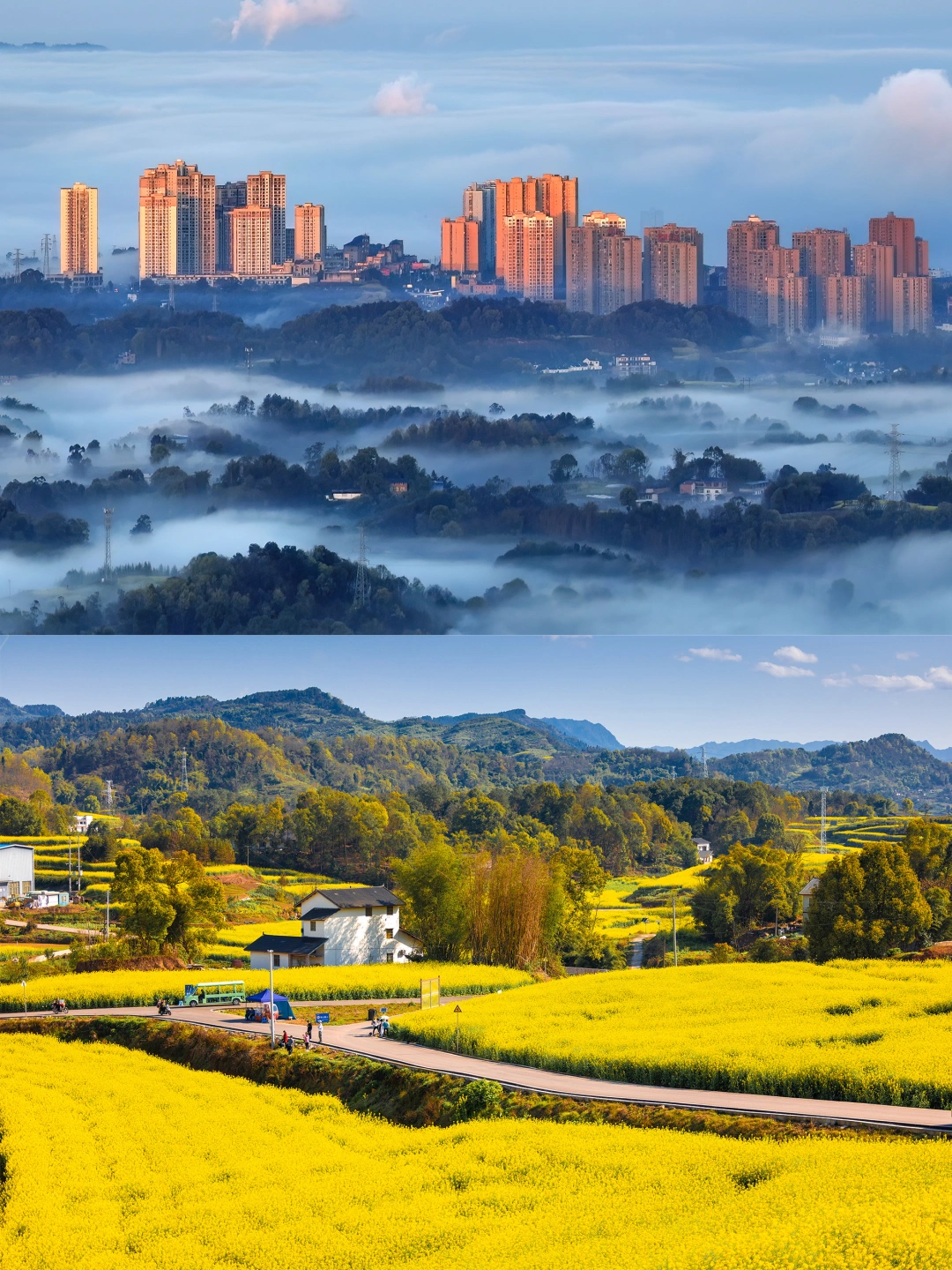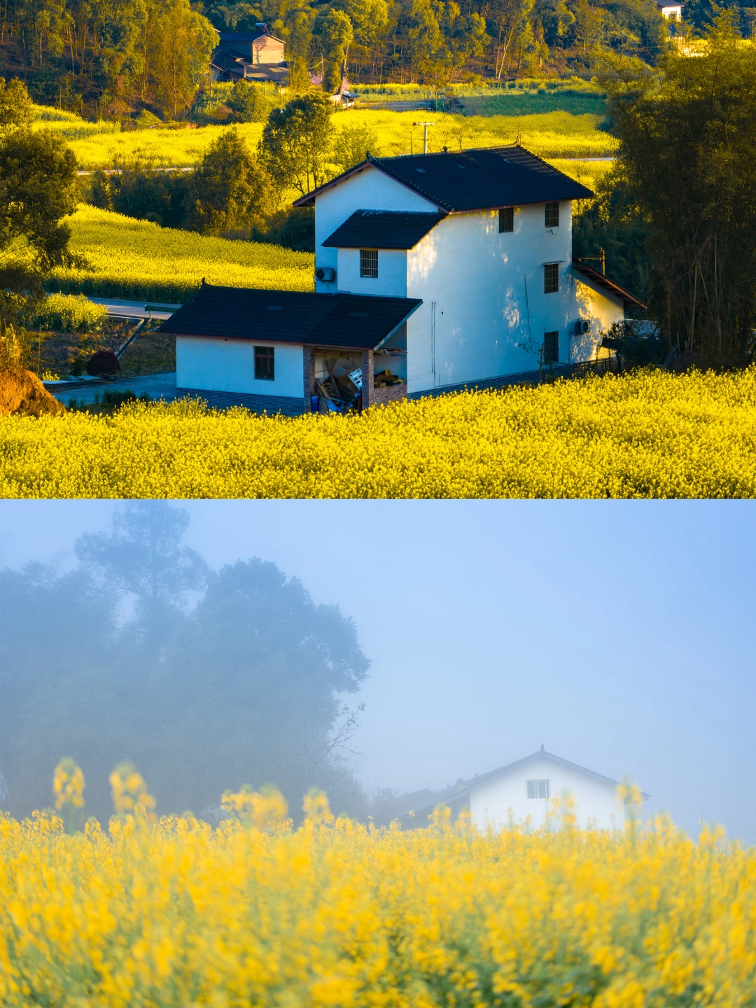 原创实拍:风过花浪起,雾散江山现,漫山遍野的油菜花才是重庆春天该有的样子啊。(图片拍摄时间:2023年3月14日)