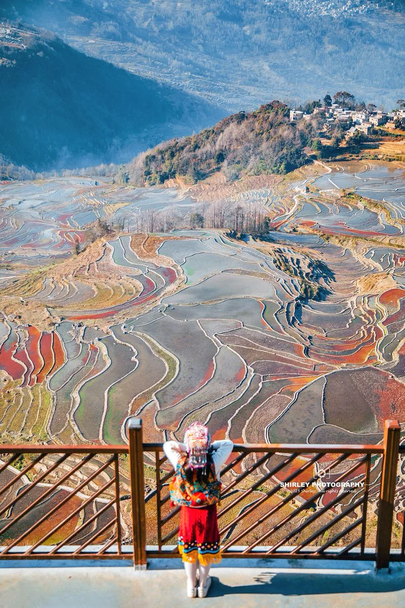 👍🏻优点:此行最爱!观景台在山巅,拥有无人机般的上帝视角,梯田五颜六色,视觉冲击力超强。有正规的两层观景台,游客很少还免费。