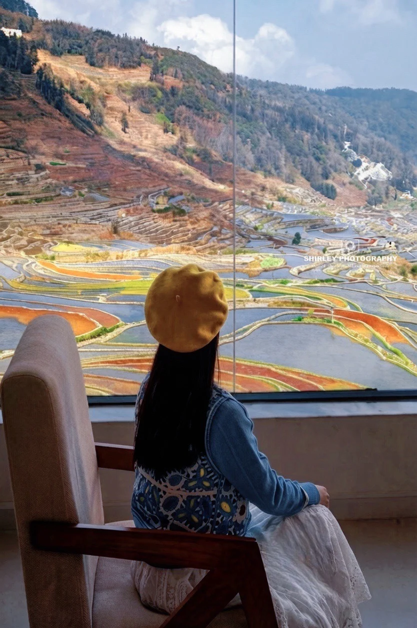 👍🏻优点:元阳梯田的明信片角度。除了经典的日出与云海,白天其他时候只要有阳光,梯田是彩色的!订的民宿在普高老寨,房内间和观景台都可以拍到多依树的侧面,早上起床上楼就能拍,三脚架位置自由。