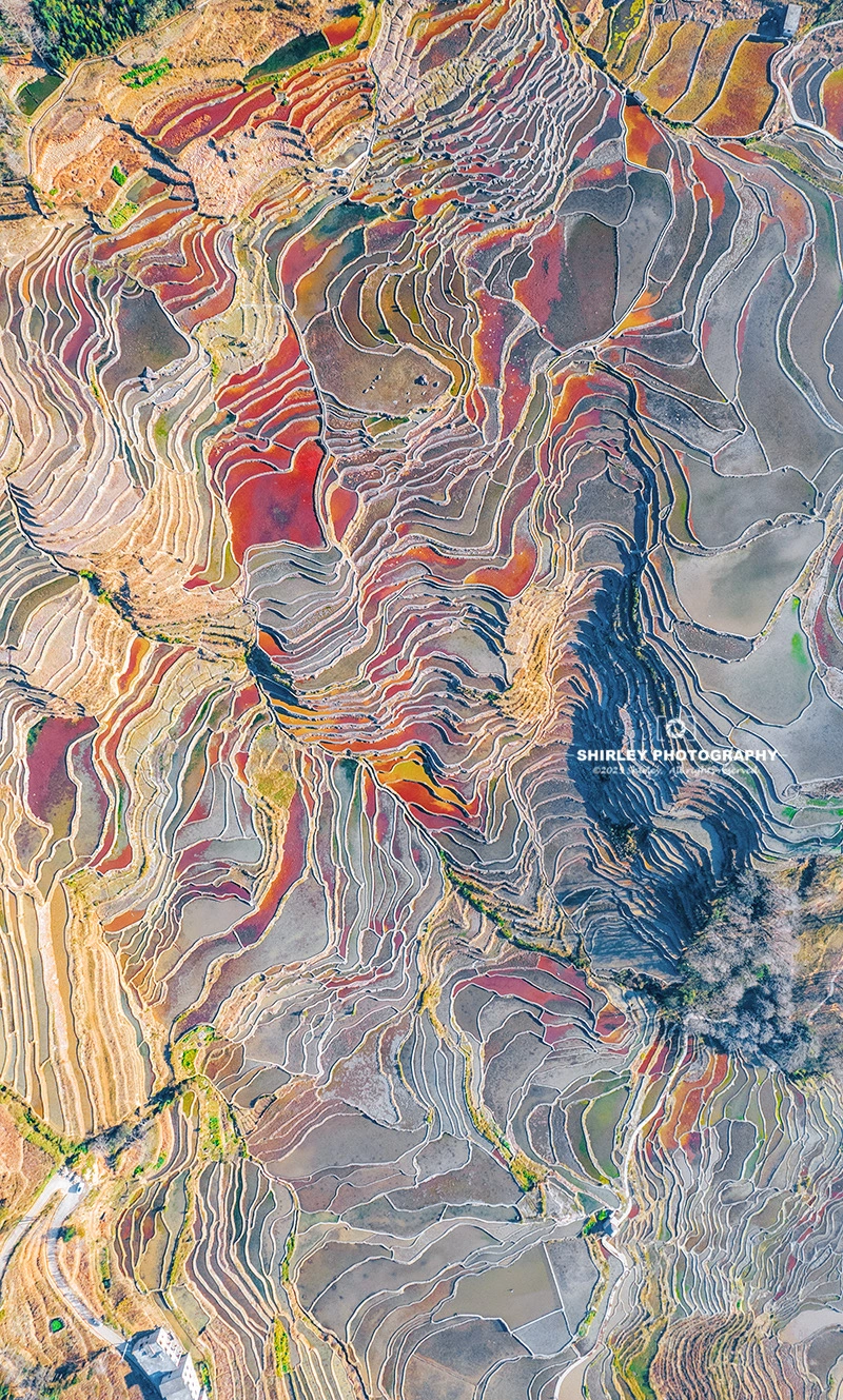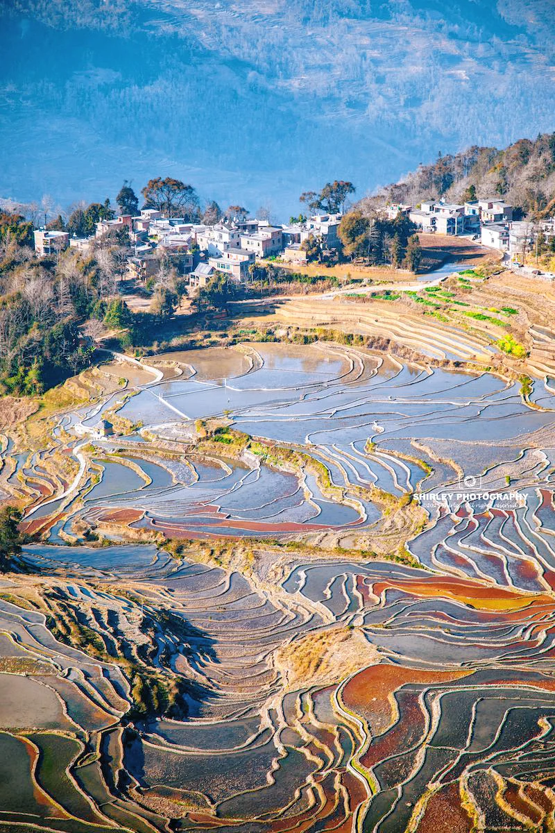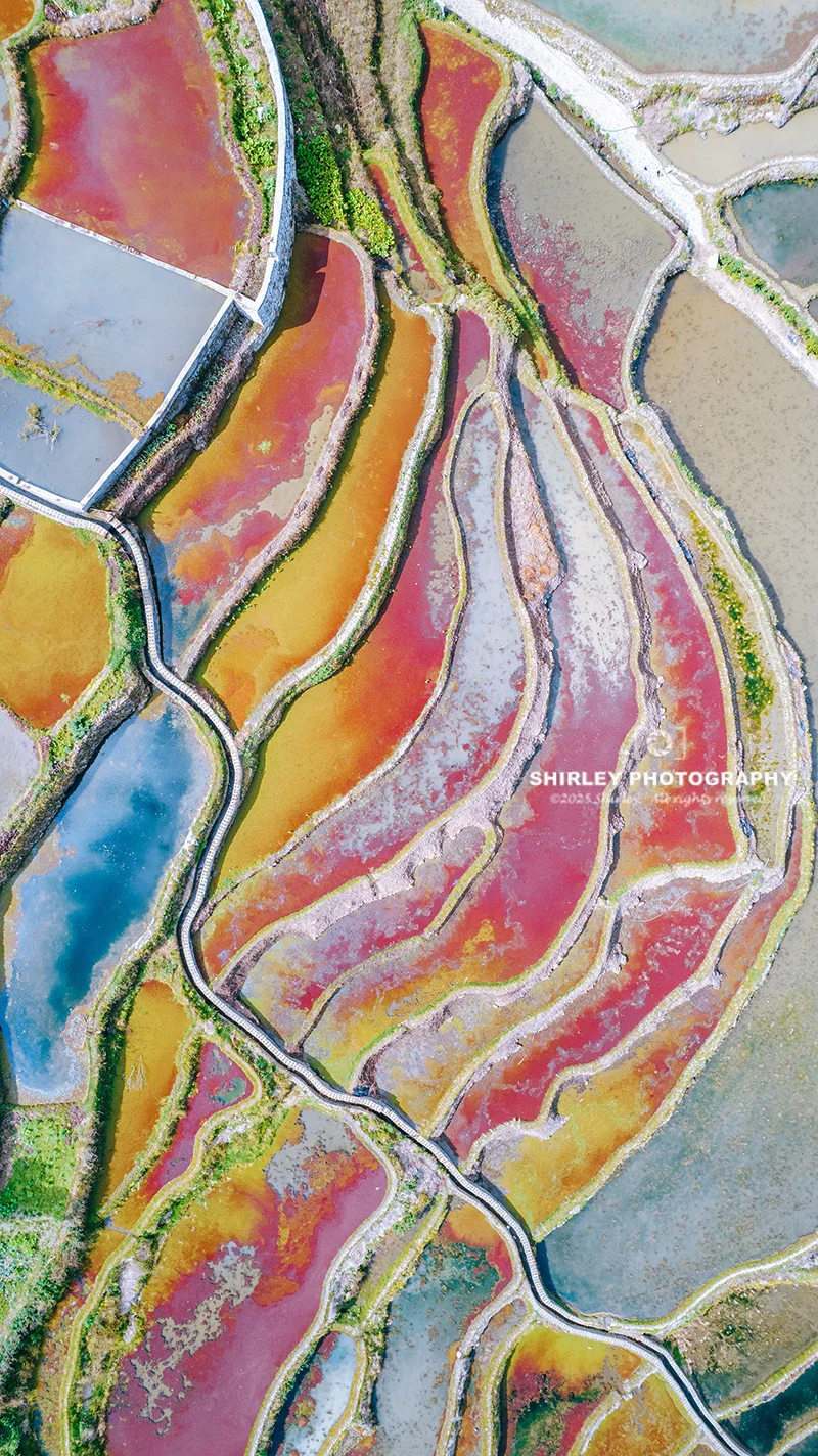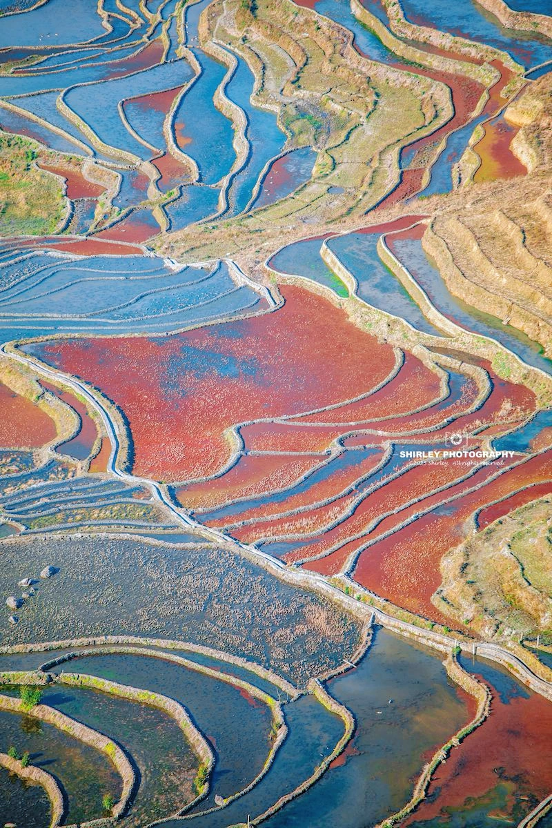 每年11月-次年3月,1-2月藻类繁殖后梯田色彩更丰富