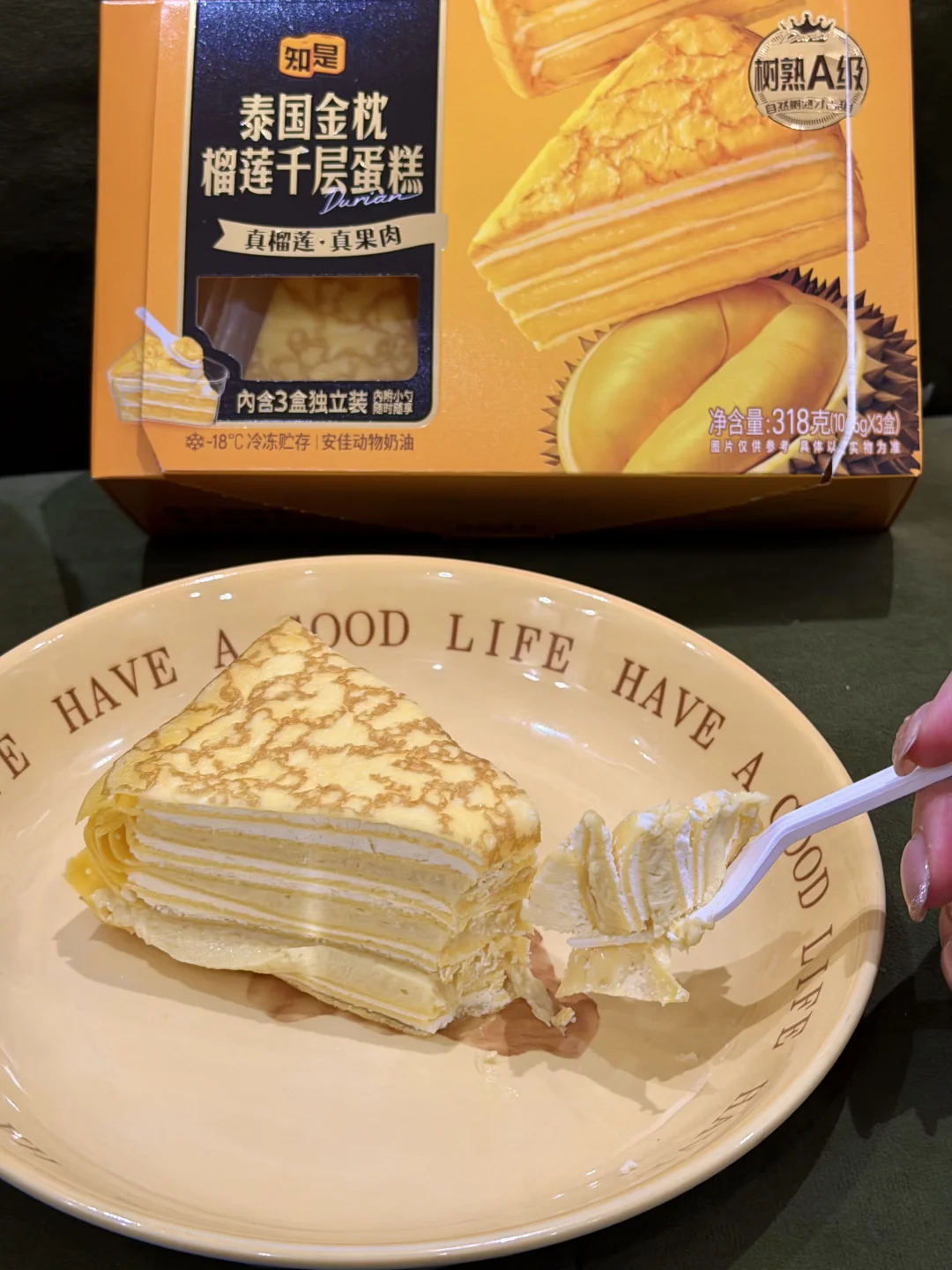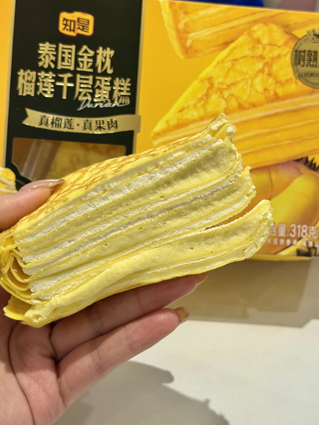 随手在胖东来买的榴莲千层 被姐妹们抢疯了,我只吃了一口 ——— 打开包装扑鼻而来的榴莲香味 一眼就能看出来的榴莲果肉 用的也都是安佳动物奶油❤️❤️ ——— 一盒里面是三块 都是独立包装 吃起来也非常方便🥰🥰 ——— 我宣布这是我吃过最好吃的榴莲千层