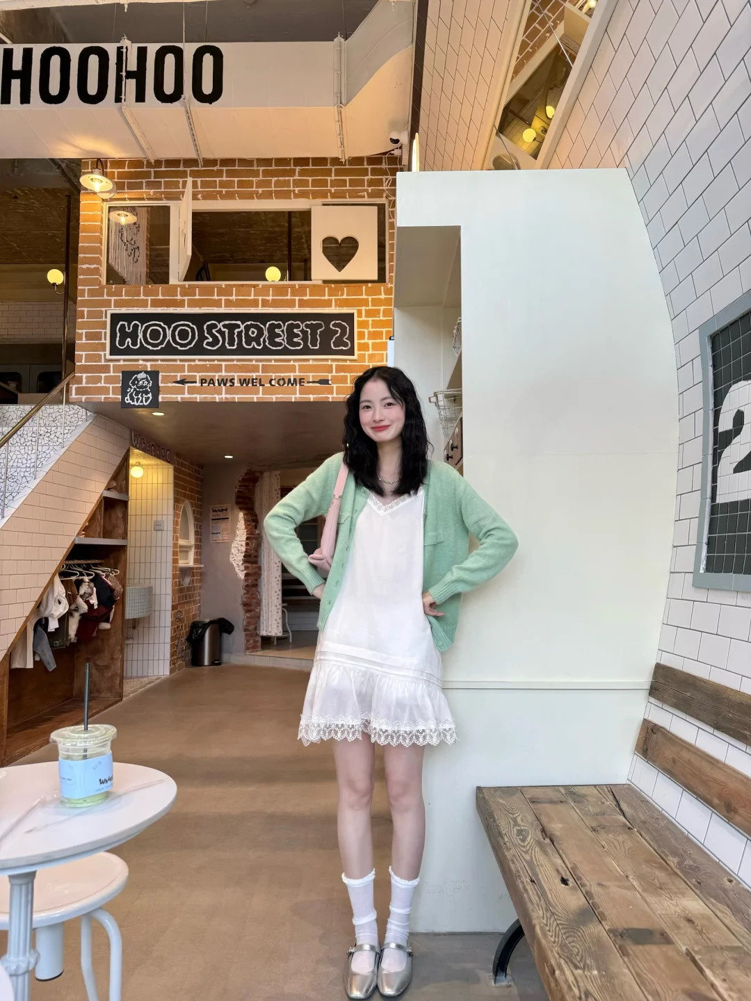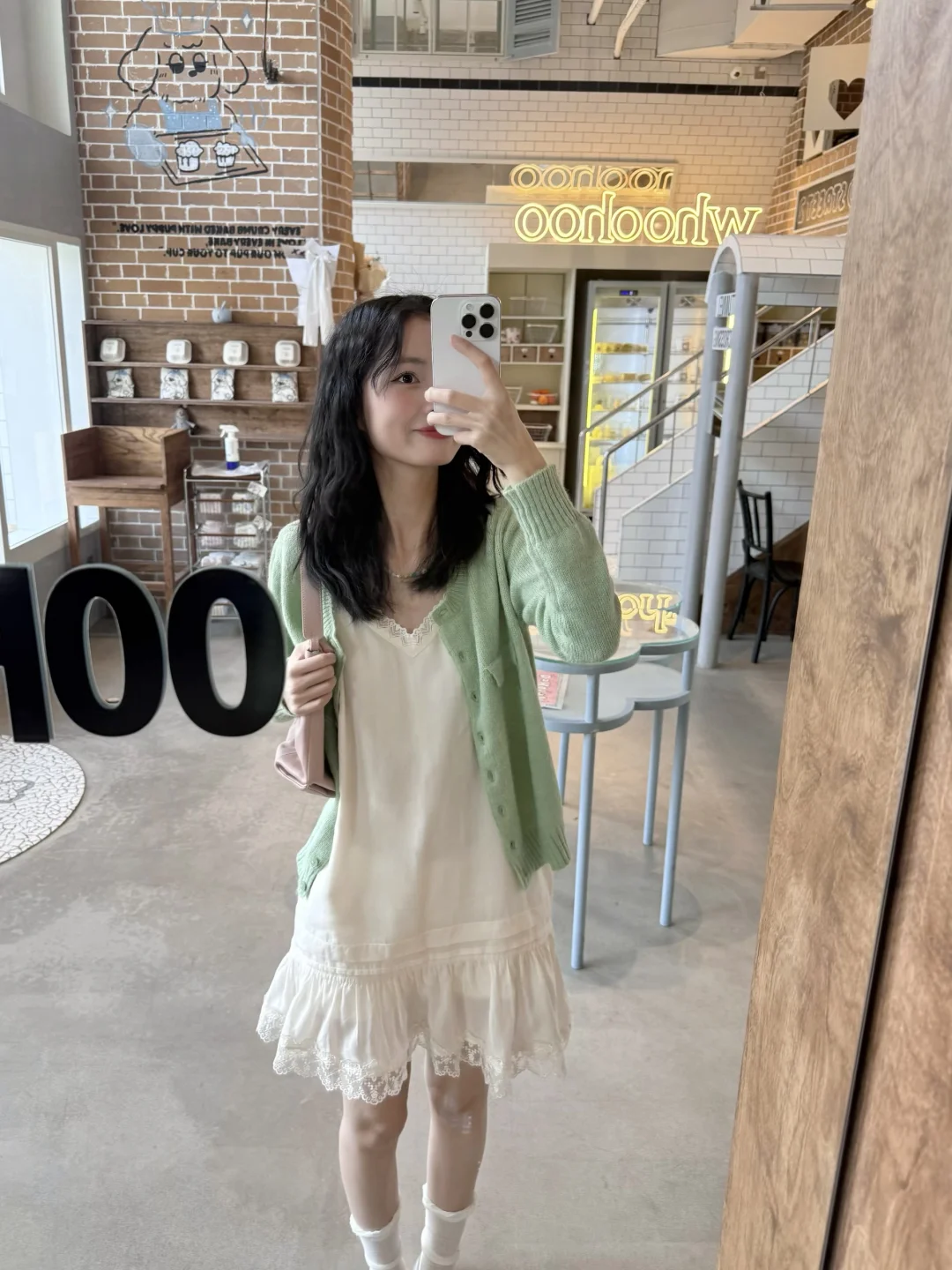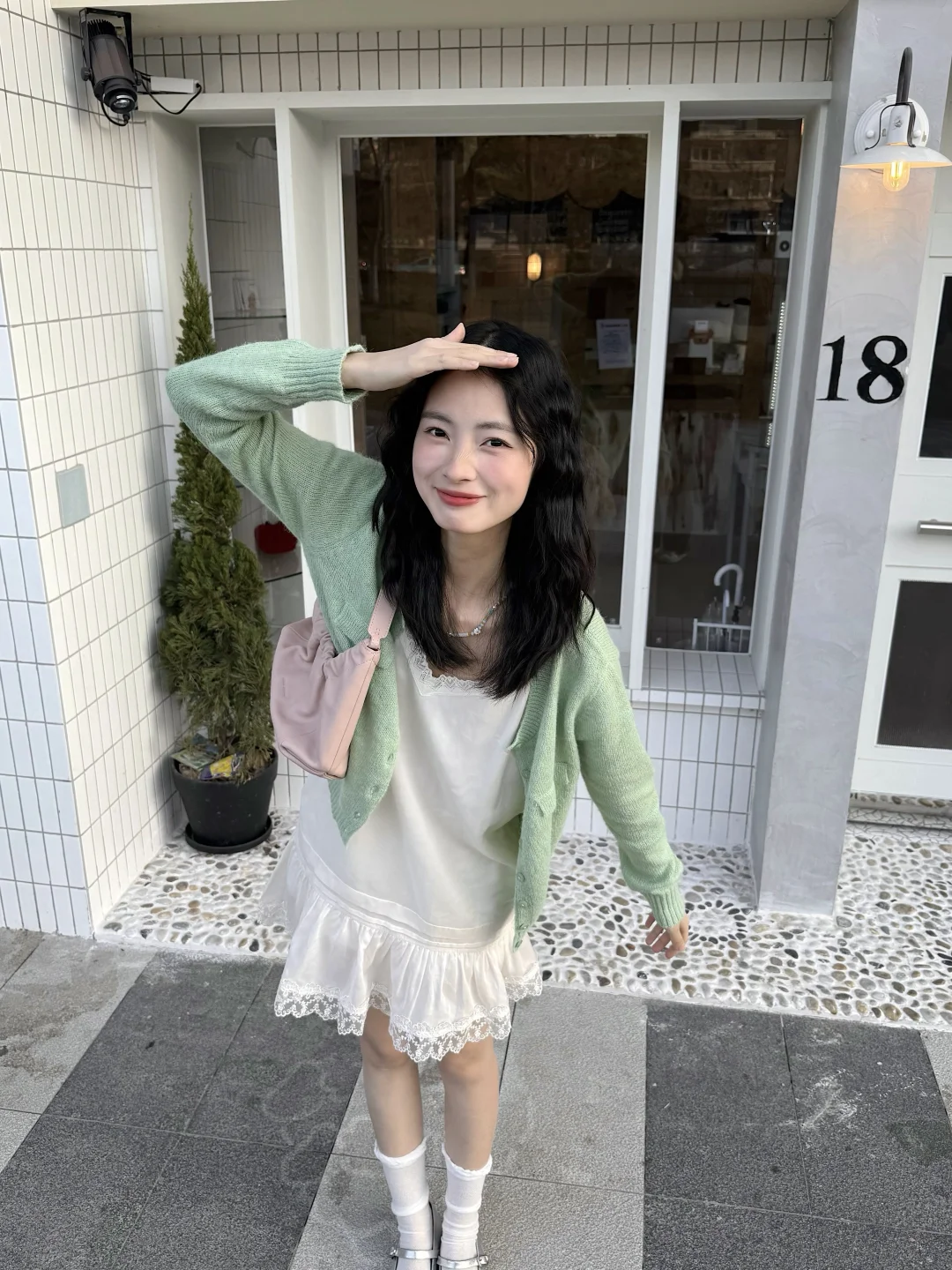 春天是穿彩色的季节呀 喜欢我的绿毛衣和小白裙'◡'