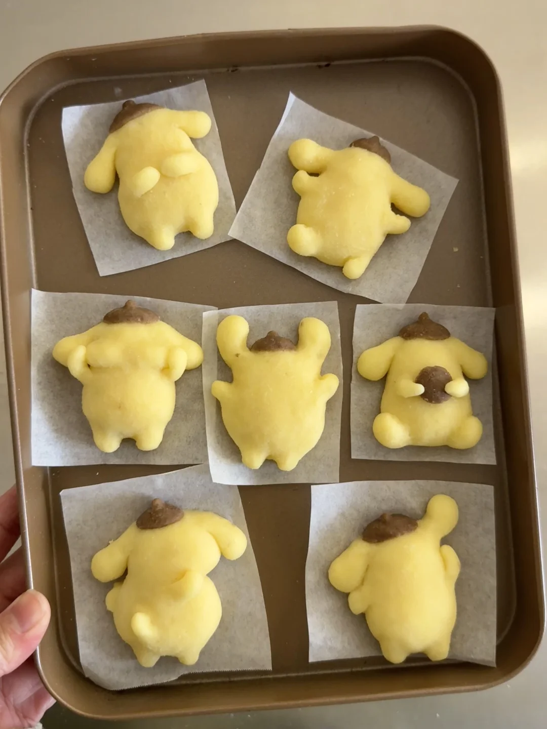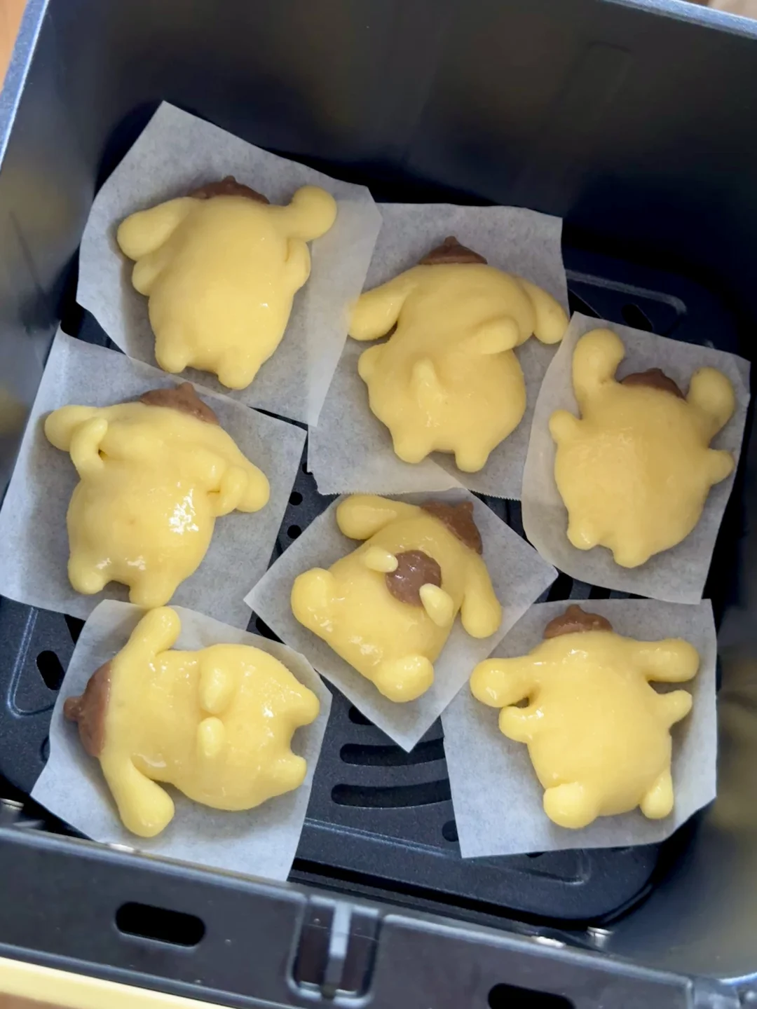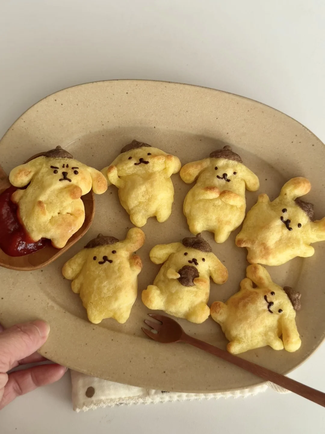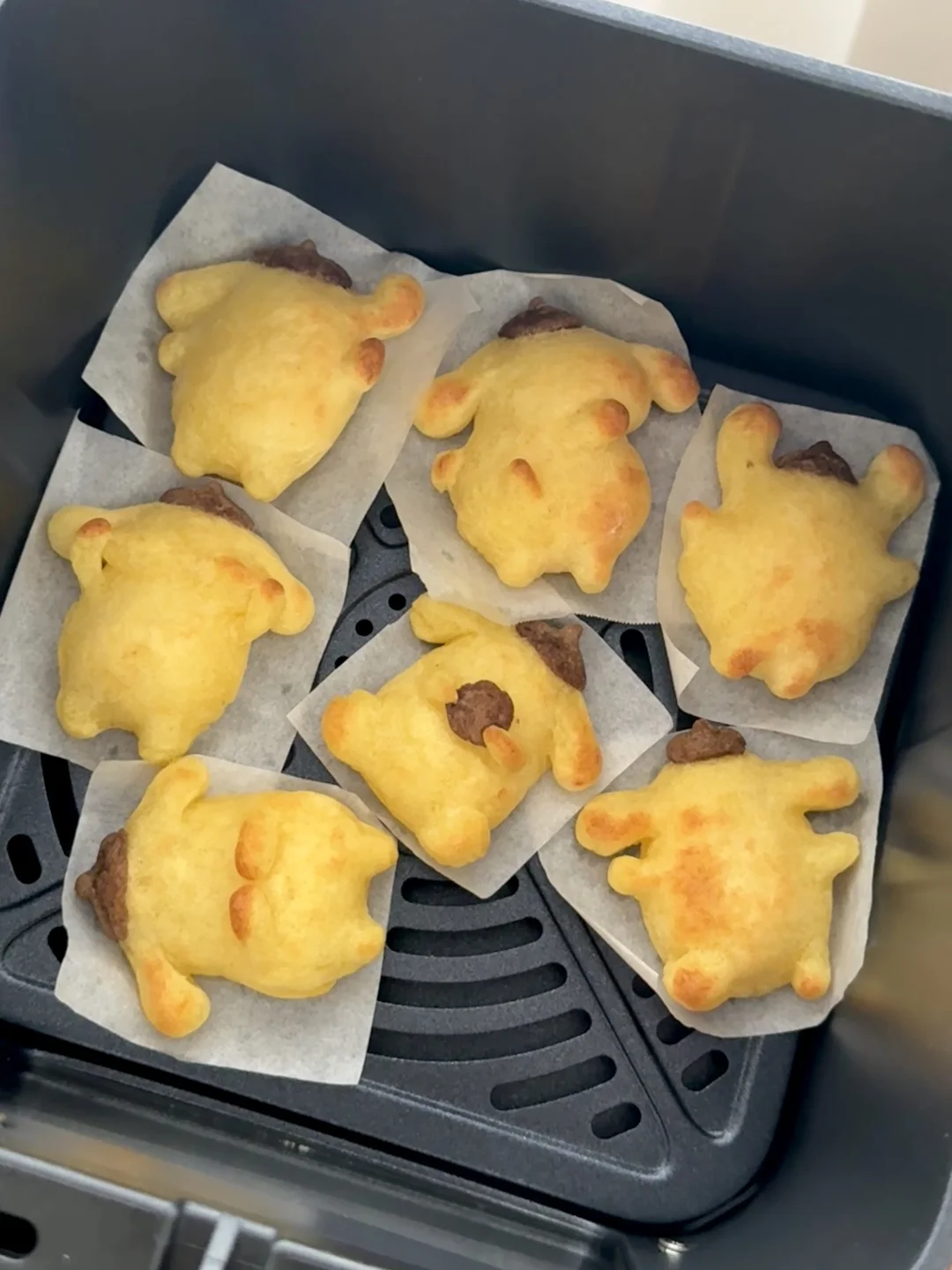 不是捏捏,是可以吃的用布丁狗薯饼哦 - 材料:土豆、玉米淀粉、黑胡椒海盐、可可粉 步骤: 1️⃣土豆泥切块上锅蒸熟,加入黑胡椒海洋捣成泥,加入适量玉米淀粉,揉成不粘手的土豆泥团 2️⃣分一小块出来加入可可粉调色 3️⃣用土豆泥捏出布丁狗的造型,连接处最好用土豆泥糊上,以免后期手脚分离 4️⃣表面刷上薄薄一层油,送入空气炸锅180度烘烤12-15分钟 5️⃣出炉后,用巧克力酱画上表情