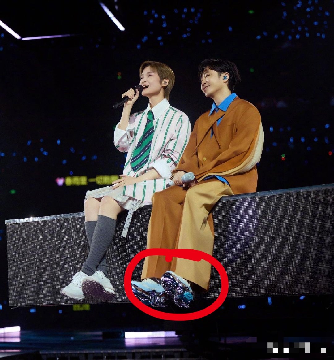 李宇春演唱会邀请了吴青峰做演唱嘉宾,吴青峰的鞋子是亮点,又能增高又酷炫闪亮。