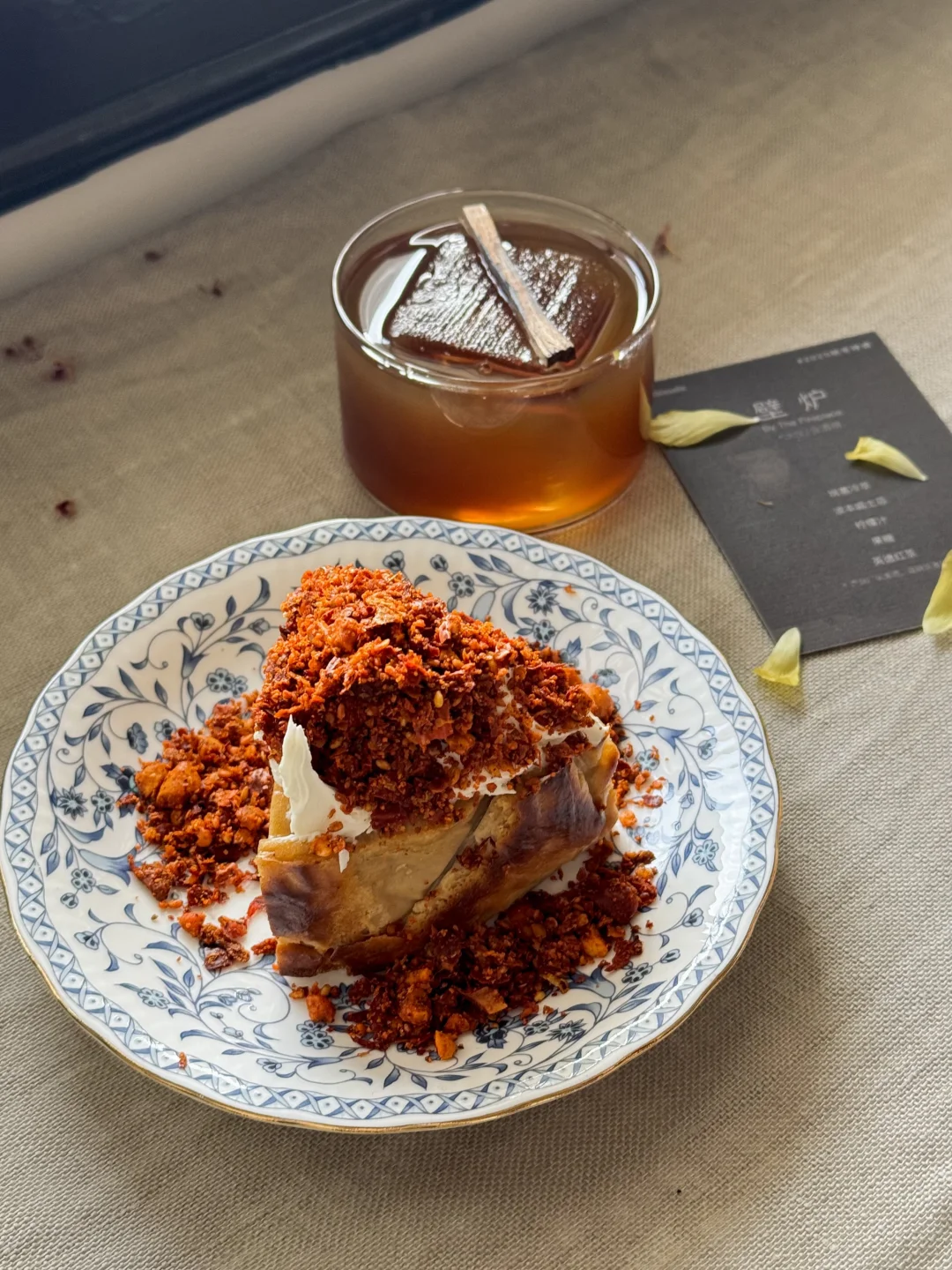 最近发现的一家很漂亮的咖啡店 开在一个老式小区里,要花点时间才能找到 万一走错方向就要到一大圈(说的就是我 因为在老房子,楼层挑高很高,空间感很舒服 整体装修也很在我心巴上,尤其配上老式圆顶窗 夕阳西下的时候阳光透进窗户特别好看 店里的花艺、瓷器的选品都很有格调 咖啡以特调和手冲为主,不太适合喜欢意式的我 但期间限定的二八酱巴斯克很是惊喜 店里一直会研发甜品,感觉可以常来试试 位置少,最好提前预约