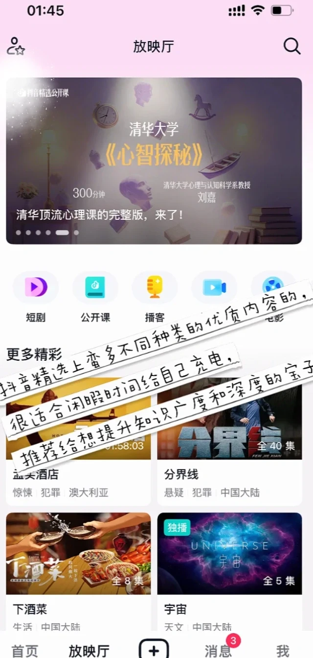 毕竟如果你不管理自己的信息输入,就只能被算法控制,在社交媒体如此泛滥浮躁的今天,能找到滋养人的深度内容,是蛮珍贵的。看了一下小选上有很多跟顶级大学合作的课程、也有商业、科普、人文等各种博主的一些专题策划,真的很丰富很深度,闲暇时间想轻松充电的宝可以冲~