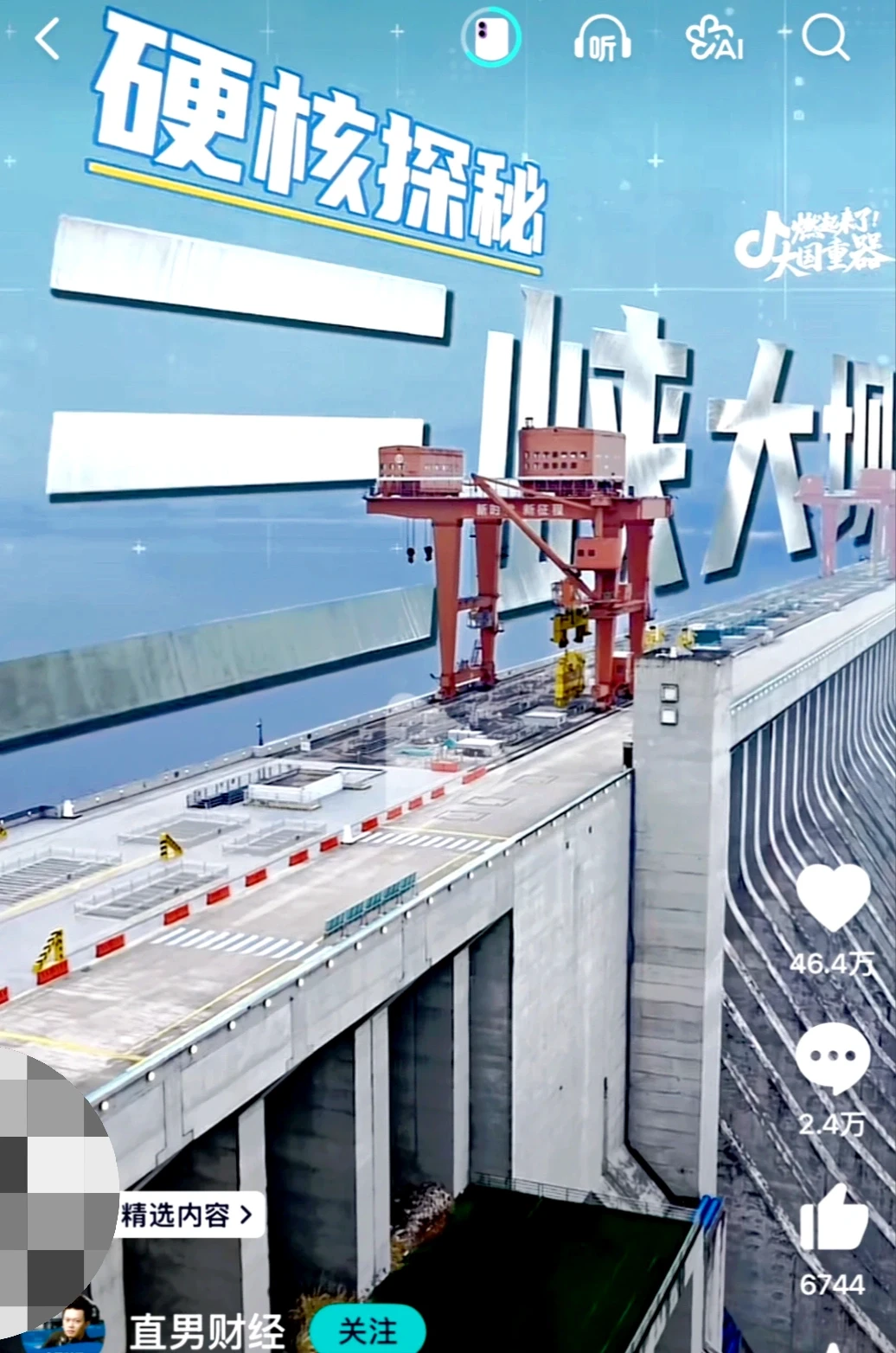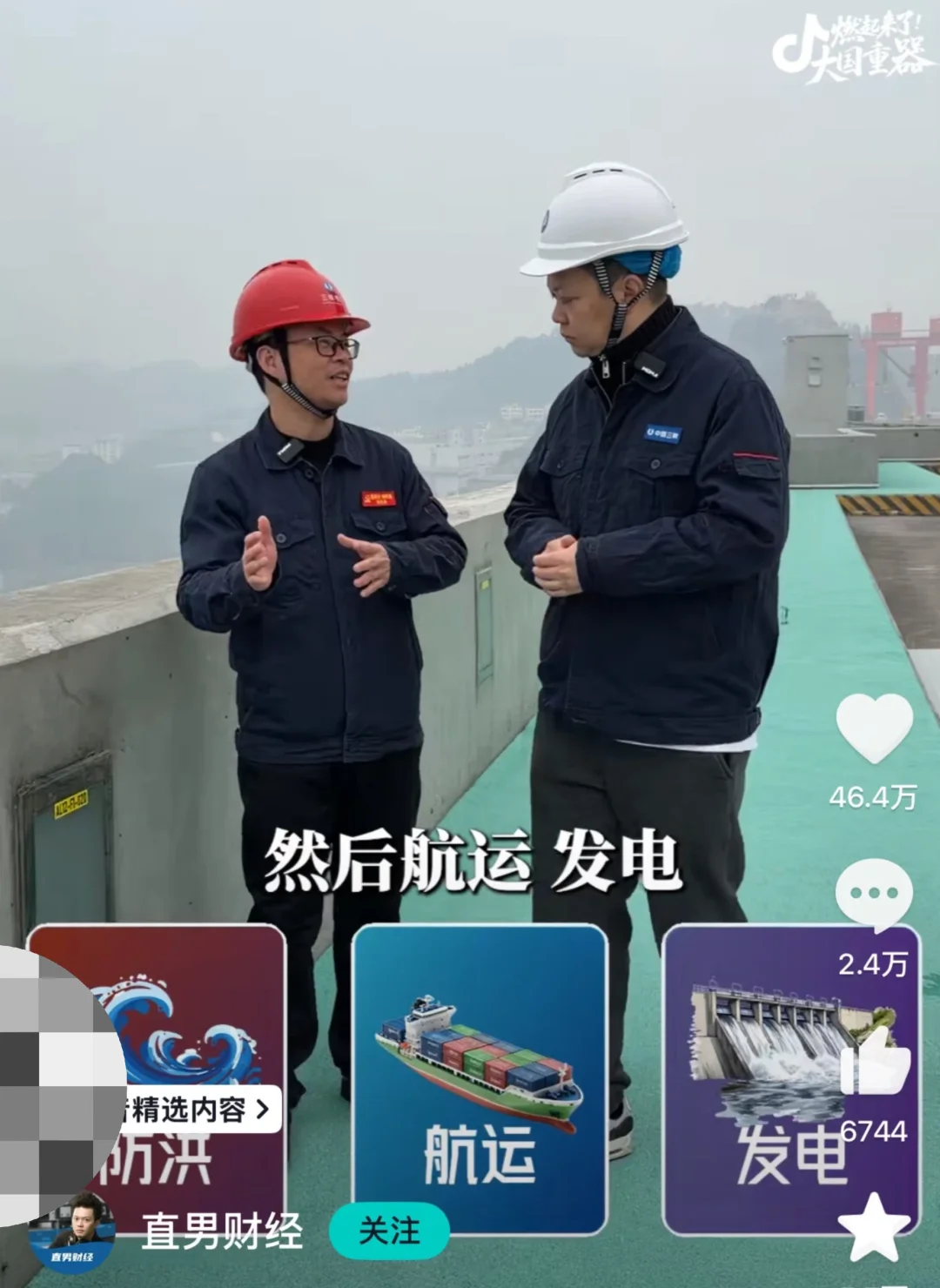 总之,直男财经这个博主去三峡工程上班的这一天,逗趣又好玩,在欢乐的氛围中带我们了解了三峡内部的主要结构和工程师们的一些工作,一些硬核的知识以奇怪、轻松的方式进入了我的脑中,长知识很不费力有木有!