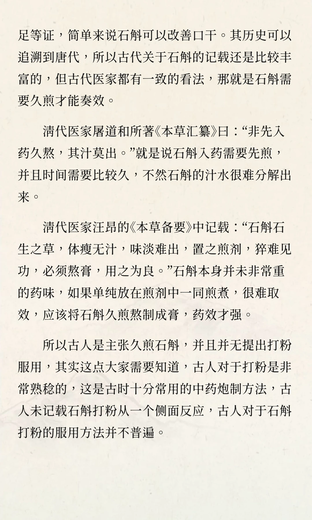 石斛为何不适合打粉服用?