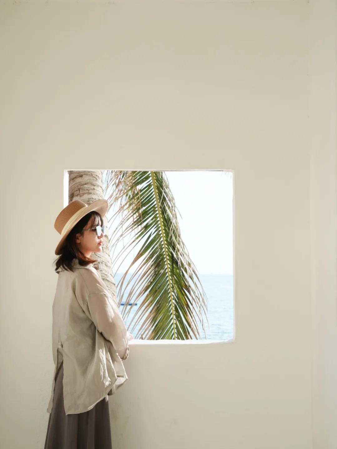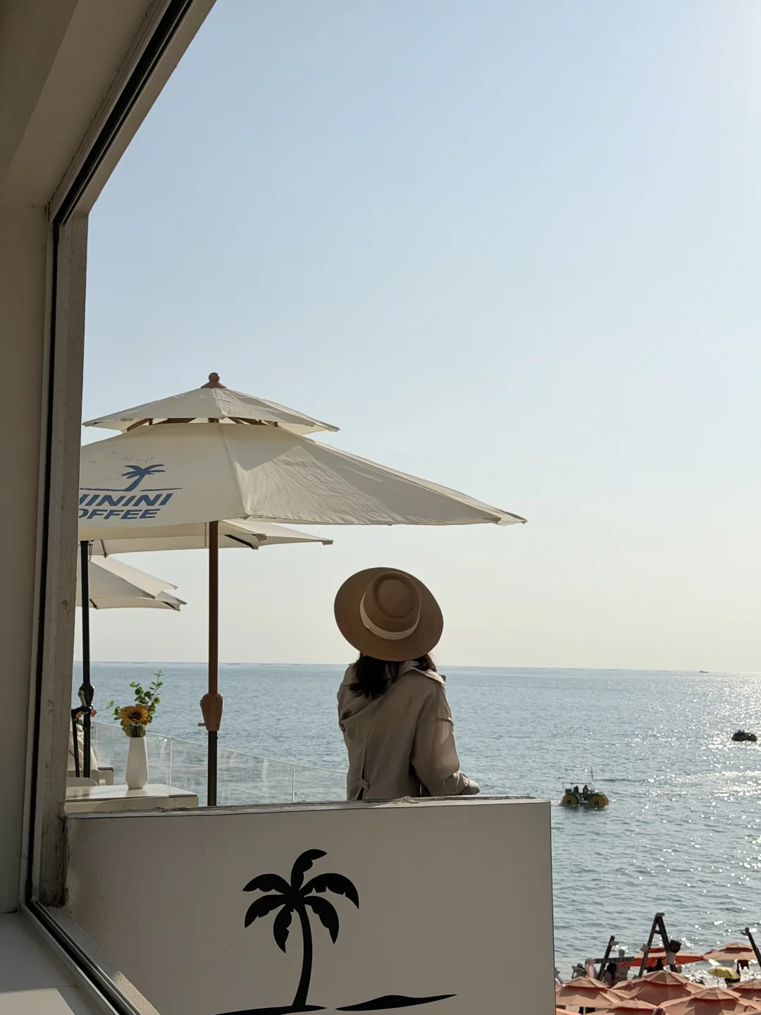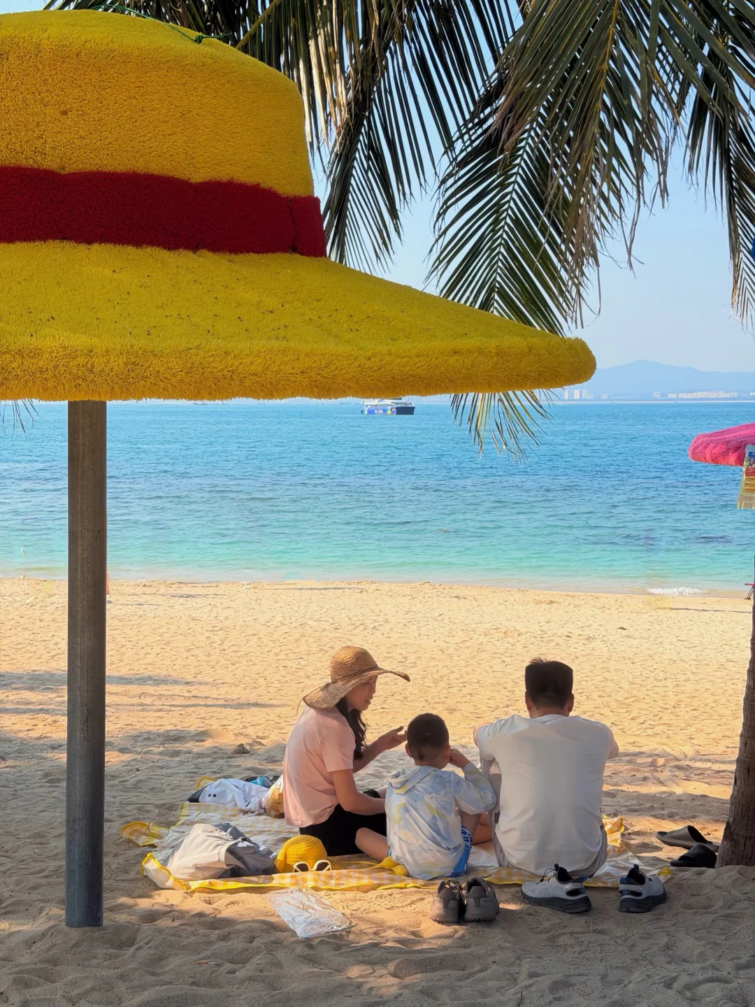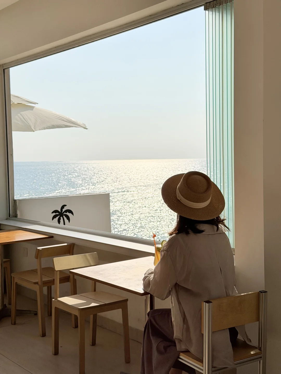 ✔️大东海:导航到大东海海水浴场,沿海边栈道依次打卡LAN 斓餐吧(蝴蝶结🎀)→圈圈子(海边相框)→阶梯机位→一尺花园