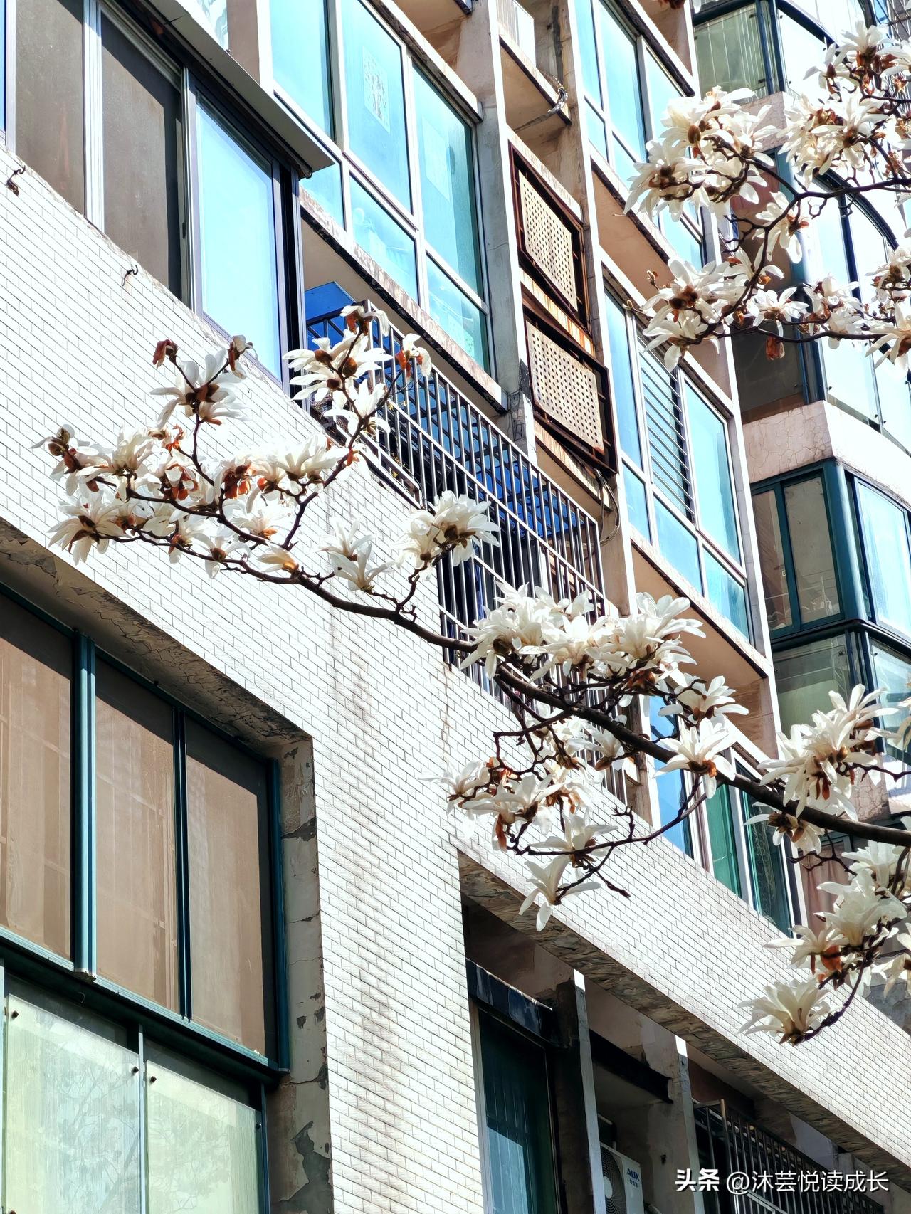 在小区楼下随手拍了几张。 楼下白玉兰开得热烈又干净,像一群停在枝头的白鸽,在蓝天里舒展着翅膀; 梅花也攒着劲儿,把细碎的白瓣缀满枝桠,风一吹就簌簌落下,像撒了一把温柔的雪。 原来春天从不用特意去远方寻找, 它就在楼下的枝桠间,在抬头就能看见的蓝天里。