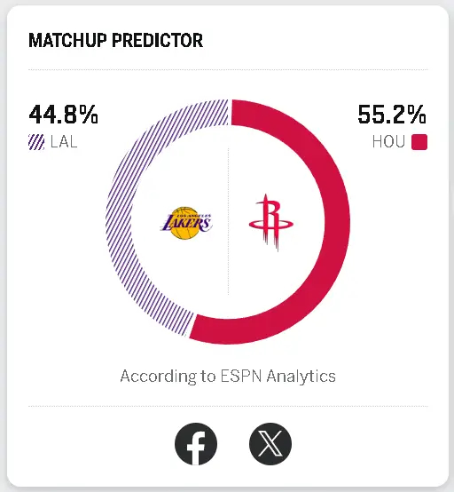 湖人明日客场挑战火箭,胜率高达44.8%湖人vs火箭洛杉矶湖人