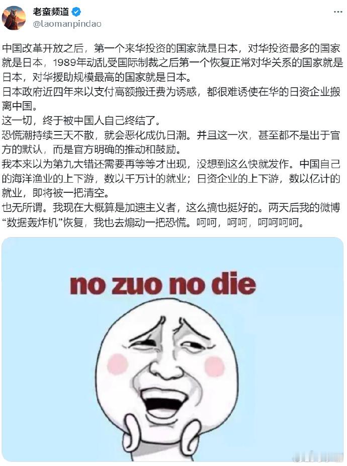 一谈到日本,精日就是这套说辞!谈日本对华援助,不谈当初日本产品因此占据大量中国市场、不谈日本侵华给中国人带来的巨大苦难并且至今不思悔改;谈美国让中国加入世贸组织,不谈当时140多个世贸组织成员都允许中国加入,不谈美国是世贸谈判对中国设置条件最苛刻谈判最艰难的一个;谈美国援建了清华大学,不谈那TM是它们从中国抢的《庚子赔款》中多抢的一部分还是中国人主动要回来的;谈中美曾经是二战盟友,美国曾经帮助中国打败日本侵略者,不谈现在是美国主动把中国当敌人对中国发起了科技战贸易战公开要围堵遏制中国!这套说辞,就仿佛日本企业和美国企业千里迢迢来中国不是为了赚钱就是为了给中国送温暖似得!就如同说当初的日军荷枪实弹来到中国不是为了侵略是为了打造“大东亚共荣圈”似得;就如同说现在的美军全副武装闯进别人家里不是为了掠夺是为了送“民主自由”一样!总有人把中国的发展强大视为别人的恩赐,我就纳了闷了:跟美国和西方关系好的国家多了去了,怎么就中国发展成了世界第二大经济体?这个世界号称民主自由的国家有100多个,怎么就中国发展成了世界第二大经济体?印度号称世界最大的民主国家,跟美国日本以及当初的苏联现在的俄罗斯的关系不知道好到哪里去了,怎么就中国发展成了世界第二大经济体?!怎么偏偏别人就这么喜欢恩赐中国?!恩赐?只有狗才会把自己的一切都视为主人的恩赐。再说了,我们买美国日本企业的产品不花钱吗?中国发展成为世界第二大经济体不是靠中国人从过去生产衣服鞋袜到现在生产手机大飞机一点一滴辛苦劳动生产出来的吗?!有些人,动辄让中国人感恩这个感恩那个,你们吃着中国人民生产的粮食用着中国人民生产的东西,说着中国话流着中国血生长在中国的土地上,我也没见你对中国有多感恩!我还要提醒有些人一点:还有些人指责我们反美仇日,你搞清楚,是美国和日本把中国当敌人公开要围堵遏制中国,不是中国!是美国和日本公开支持港台毒分裂,不是中国!是美国对中国发起科技战贸易战,不是中国!是日本至今不思悔改依然甘当美国围堵中国的马前卒和炮灰,不是中国!美国人反中,中国人就反美;日本人仇中,中国人就仇日。你们不要倒果为因!相比高达九成的日本人反华,中国人还差得远呢,所以说中国人才是真正善良宽容大度的民族呢。如果如此善良宽容大度的中国人都把你当敌人,你得反思!
