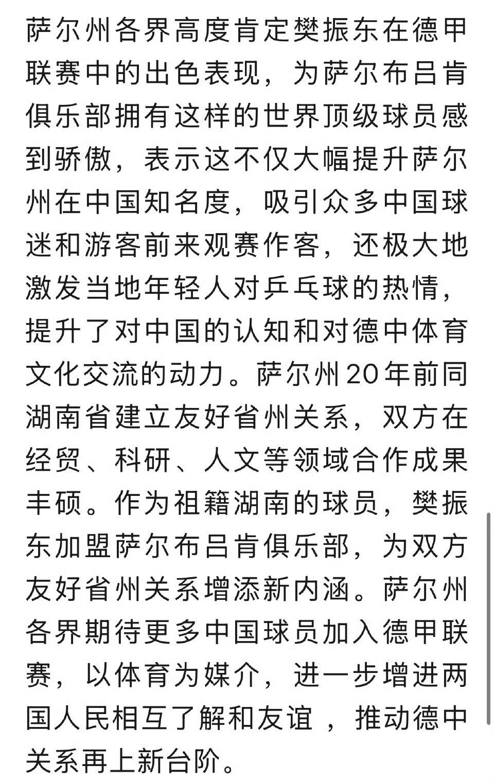 驻法兰克福总领馆发文肯定樊振东