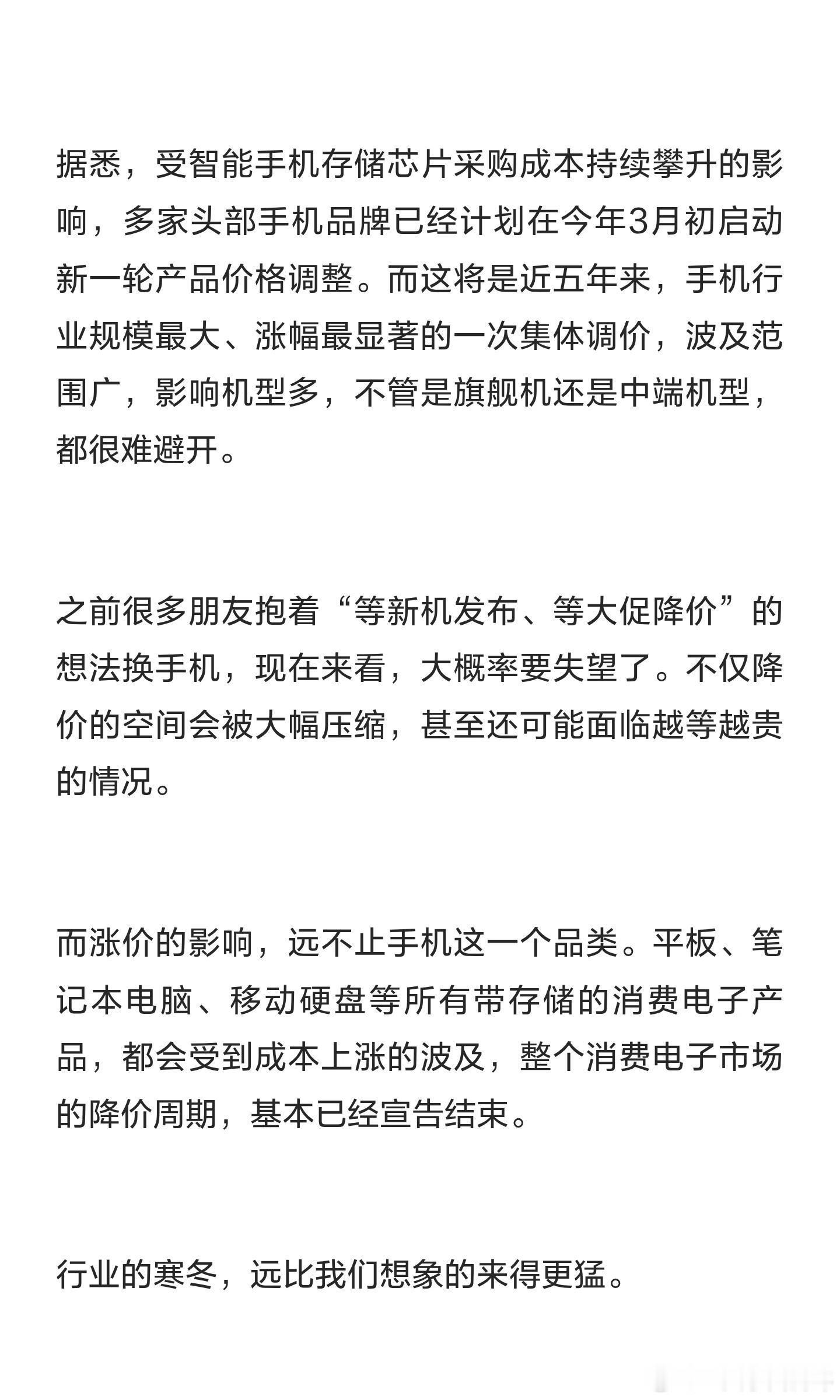 手机电脑迎来涨价潮让豆包给总结了一下,手机还真不少涨价: