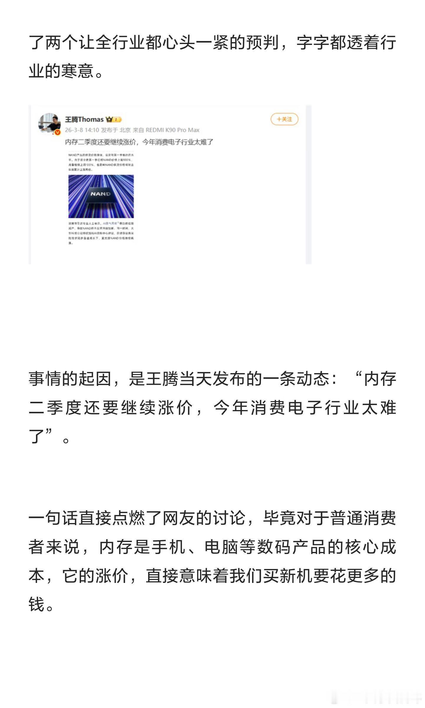 手机电脑迎来涨价潮王腾最新预警!内存涨价要熬到2028年,手机存储芯片涨价潮持续