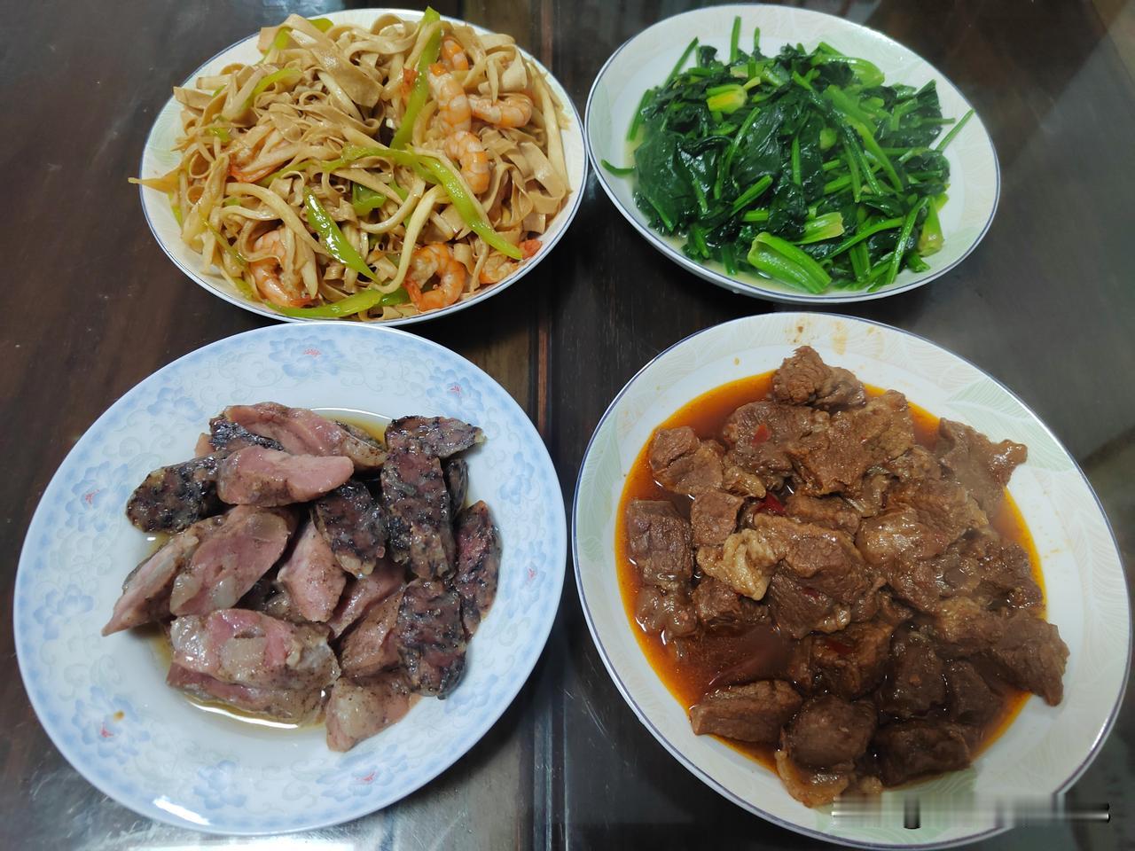今日南京春雨霏霏,最高温度11℃,体感温度偏低,白天湿冷依旧,需保持冬季着装,做好防寒保暖工作。 早上看外面正在下雨,在床上多捂了一会儿,起来后简单的弄了早饭,年糕稀饭加包子鸡蛋。 白天下雨,家里也有菜,就没有出去,中午用菠菜下面条,放了几个虾仁,每人加一个昨天吃剩的鸡腿,老两口吃得津津有味。 今天继续处理冰箱里的库存,拿出春节前买的牛肉解冻,晚上做个红烧牛肉,切点香肠蒸饭时放电饭锅里蒸一下。小孩发信息说晚上不回来吃,老两口晚上四个菜,蒸香肠、红烧牛肉、百叶炒虾仁、清炒菠菜。 友友们,天气不好,心情要好,祝友友们开心快乐每一天!