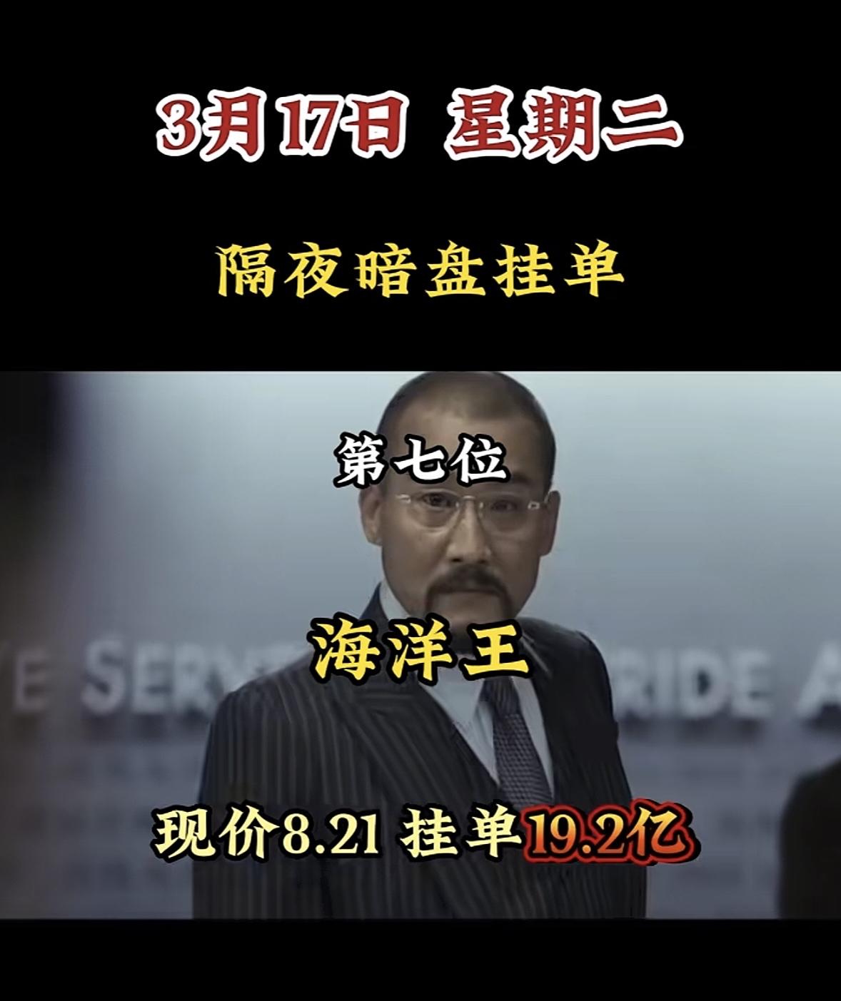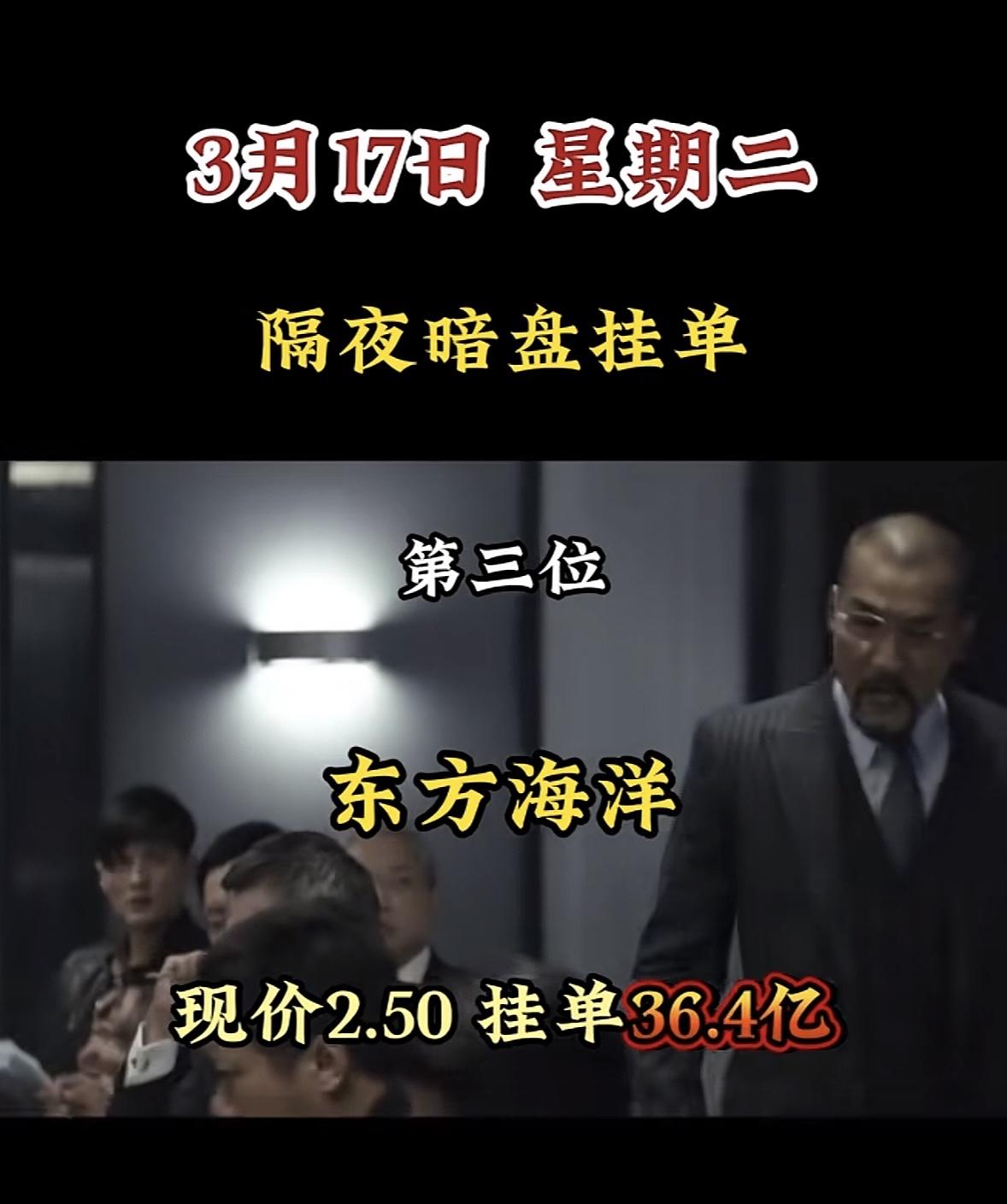 3月17日暗盘隔夜挂单个股揭晓 海洋王这情况有点意思啊!现价8.21,挂单居然