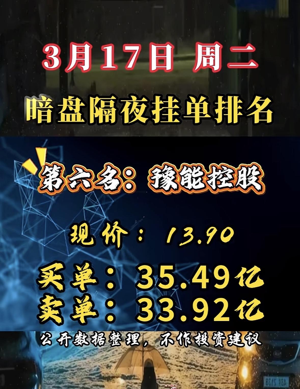 3月17日周二暗盘隔夜挂单个股排行榜揭晓 金牛化工暗盘隔夜挂单之前排第二,现在排行第八了。3月16日时,它现价16.94元,买单95.84亿,卖单39.69亿。当时化工行业整体复苏,市场需求回暖,大家对它业绩改善预期挺高,资金大量买入。可如今现价到了18.40元,排名却下降了。这变化有点意思,可能市场对它的热情有所转移。对比当时排名第一的中国电建,买单113.21亿远超卖单,人家可是电力工程建设龙头,受益于“双碳”政策和基建投资。金牛化工后续咋样,还得接着瞧。