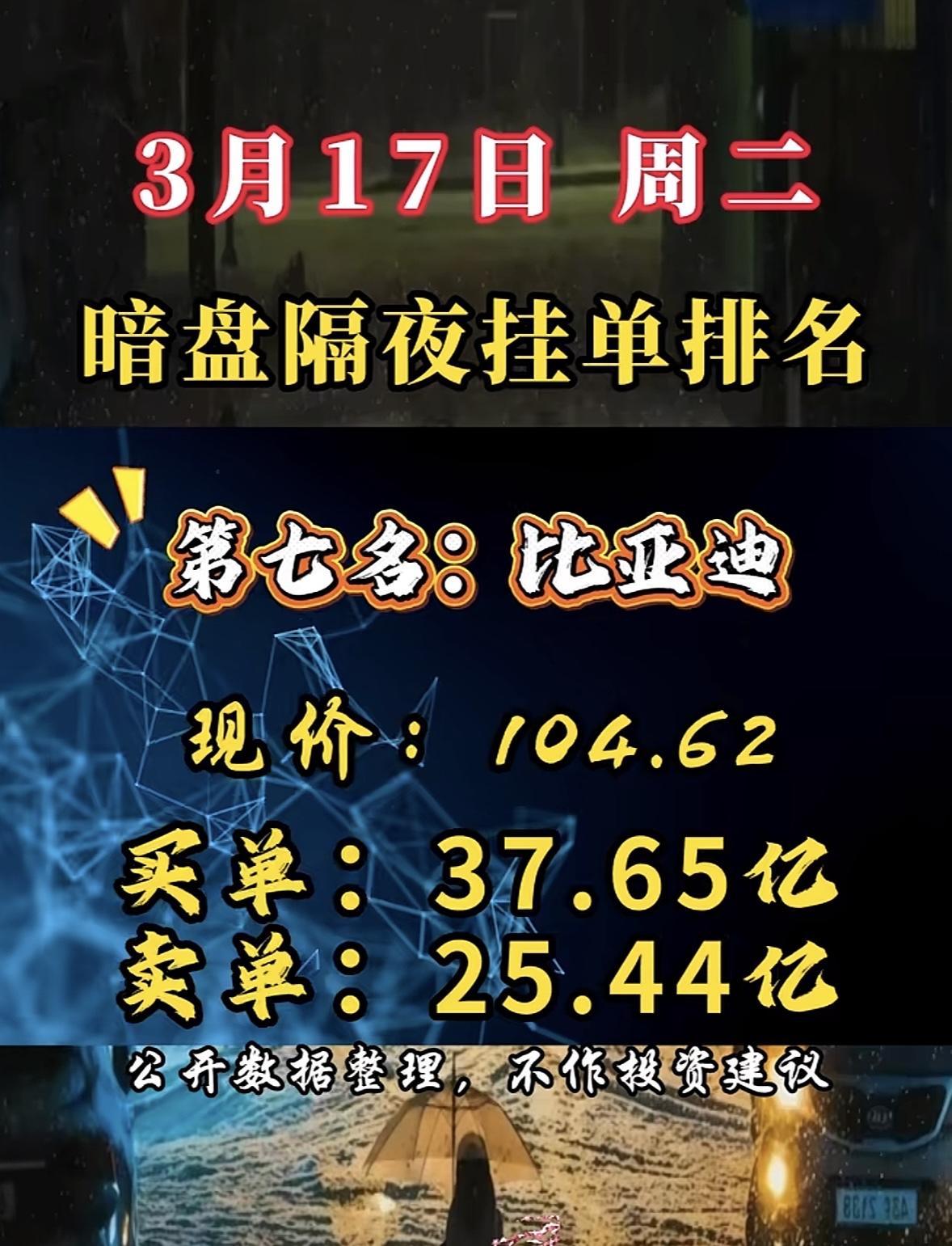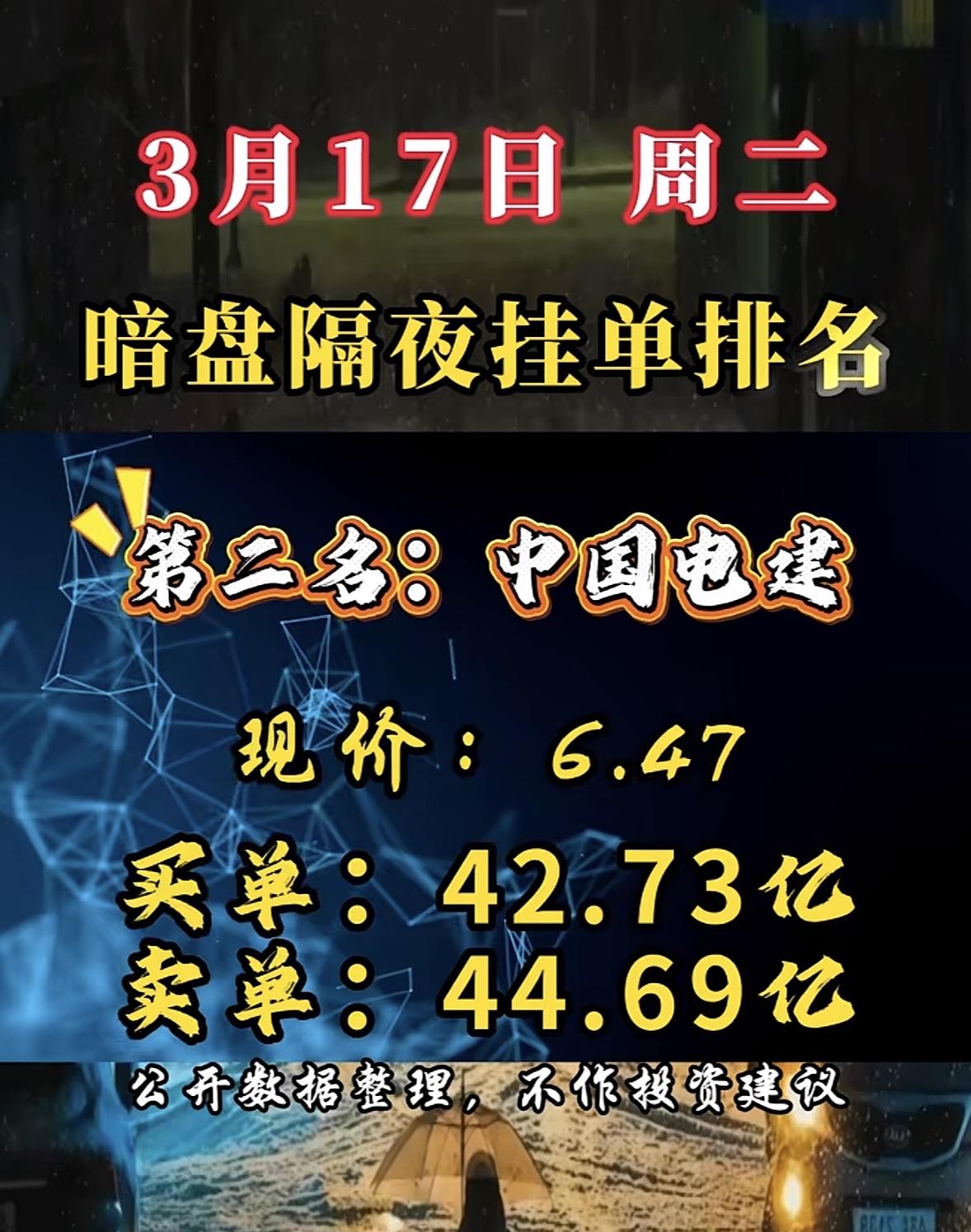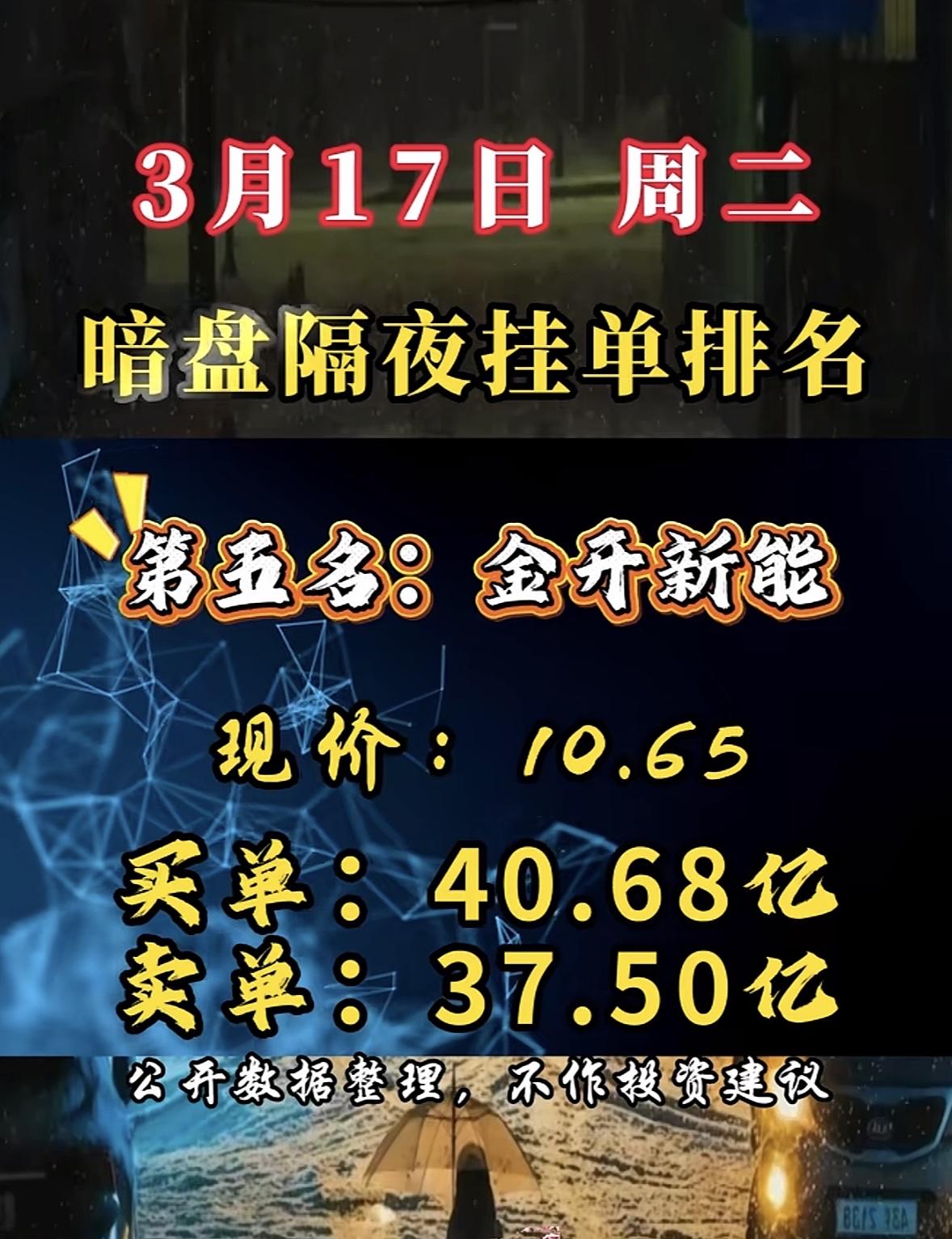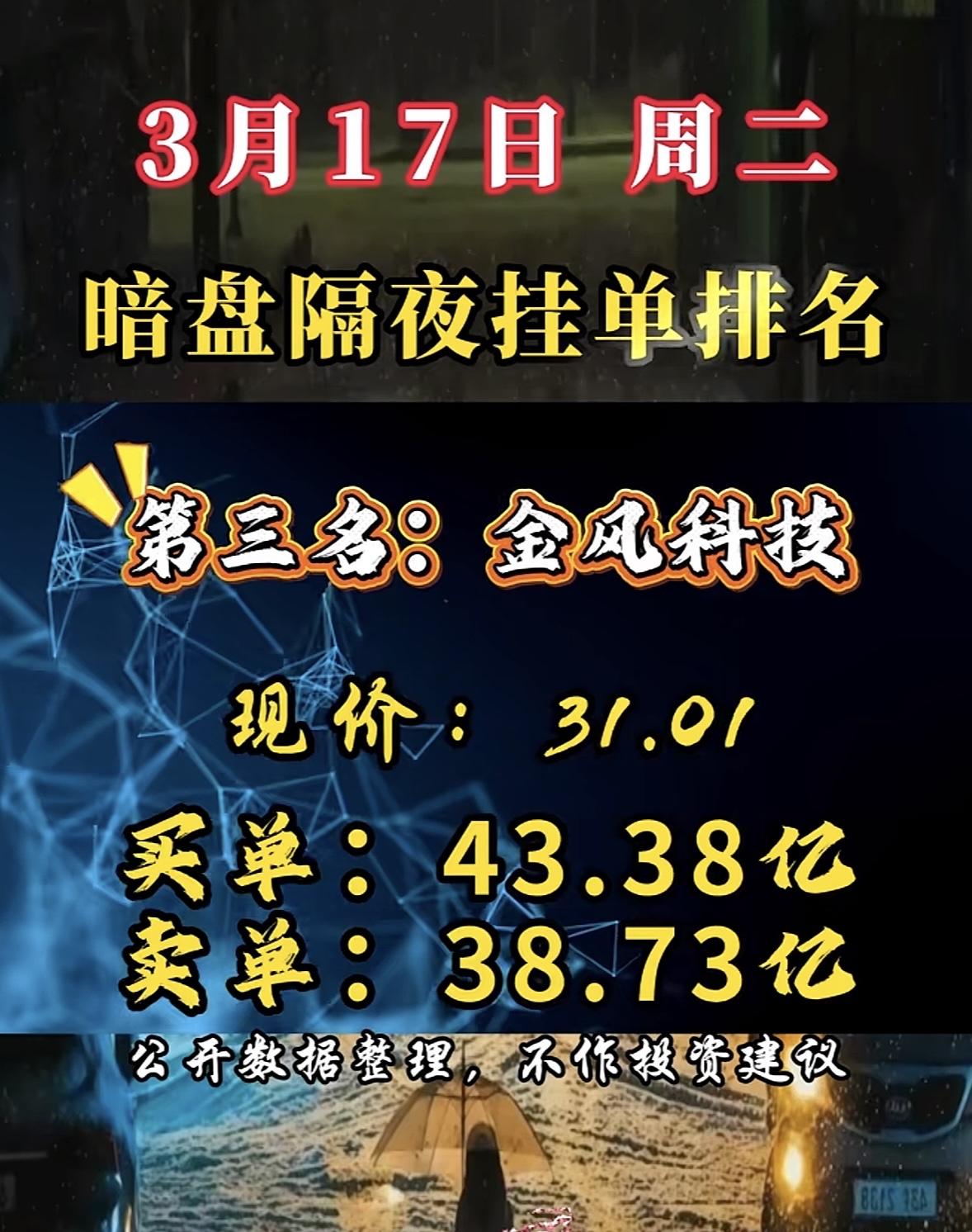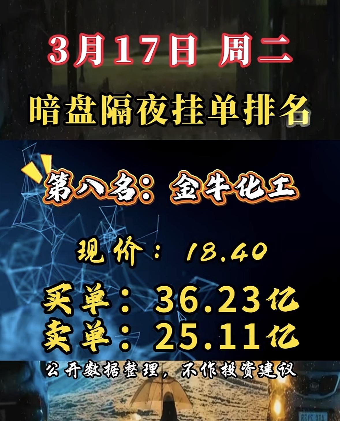 3月17日周二暗盘隔夜挂单个股排行榜揭晓 金牛化工暗盘隔夜挂单之前排第二,现在