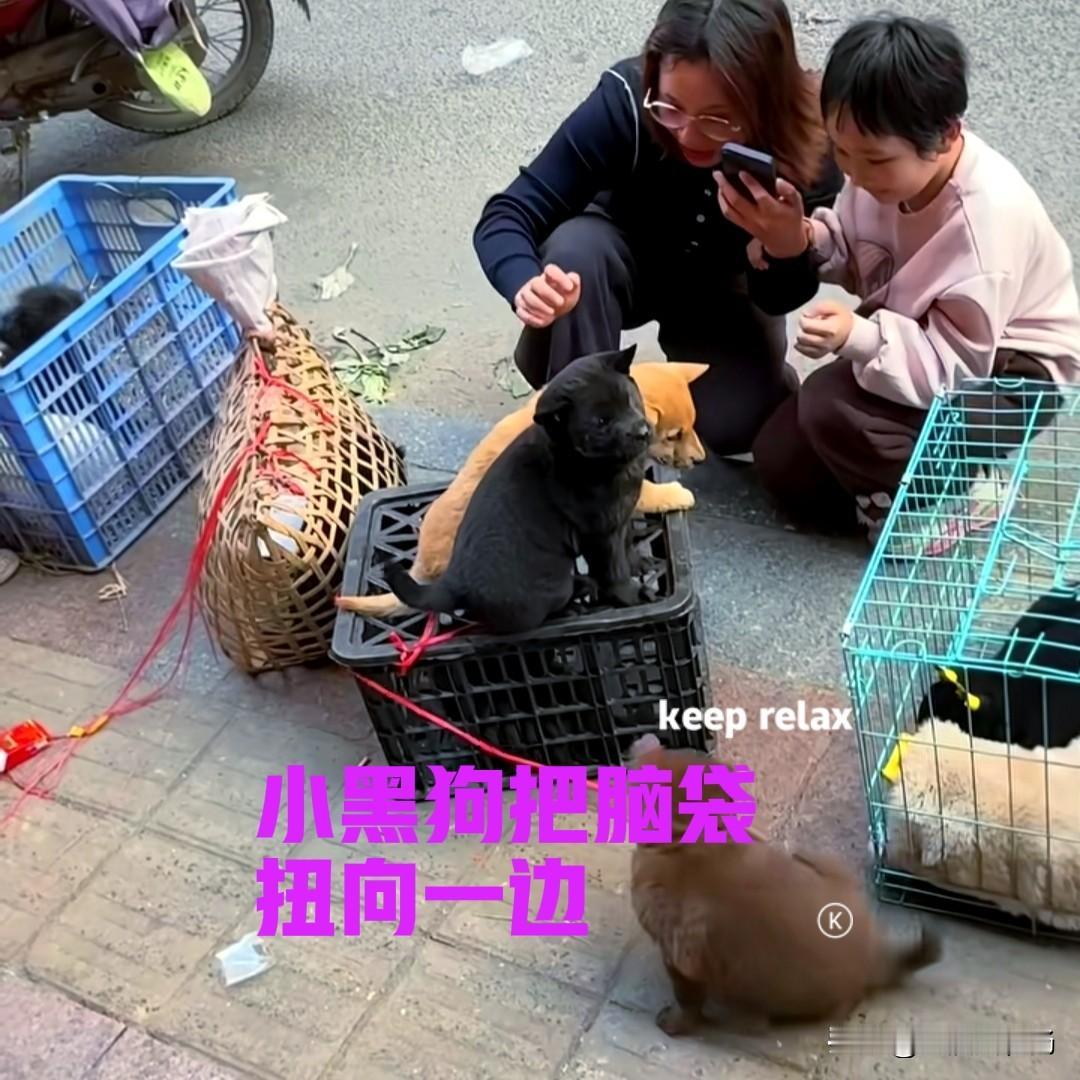 乡下的狗市上,一对母女正蹲在地上挑选小狗。笼子上有一只小黄狗,和一只小黑狗,地上还有一只小灰狗,它们都是一母同胞。小黄和小黑很听话,小灰就比较调皮,在地上跑来跑去。 小黑站在笼子上,不停地摇着尾巴,极力讨好着眼前的母女,希望她们能把它带走。可是从那对美女的表现,可以很明显地看出,她们更喜欢小黄一些。小黑可能也感受到了,把头扭向了一边。 小黑生气的样子,就知道它吃醋了。结果不出所料,那对母女选择了小黄。小黑望着她们远去的背影,眼神变得有些落寞了。其实在场的每一只小狗,都非常乖巧可爱,希望它们都能遇到自己的有缘人吧!